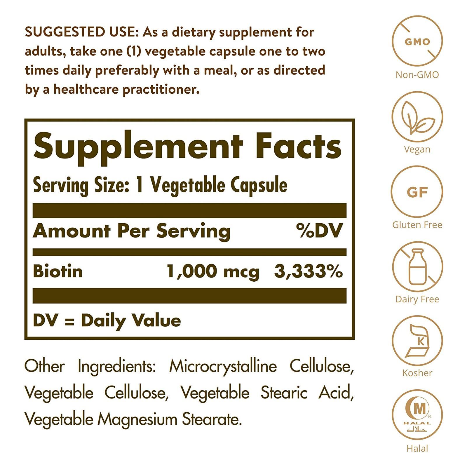 description_base: Solgar Solgar Biotin 1000 mcg, 250 Vegetable Capsules - Supports