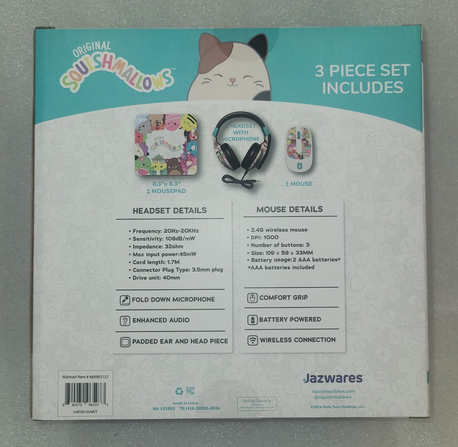 как выглядит Squishmallows Headset with Microphone, Wireless Mouse, and Mouse Pad Tech Bundle фото