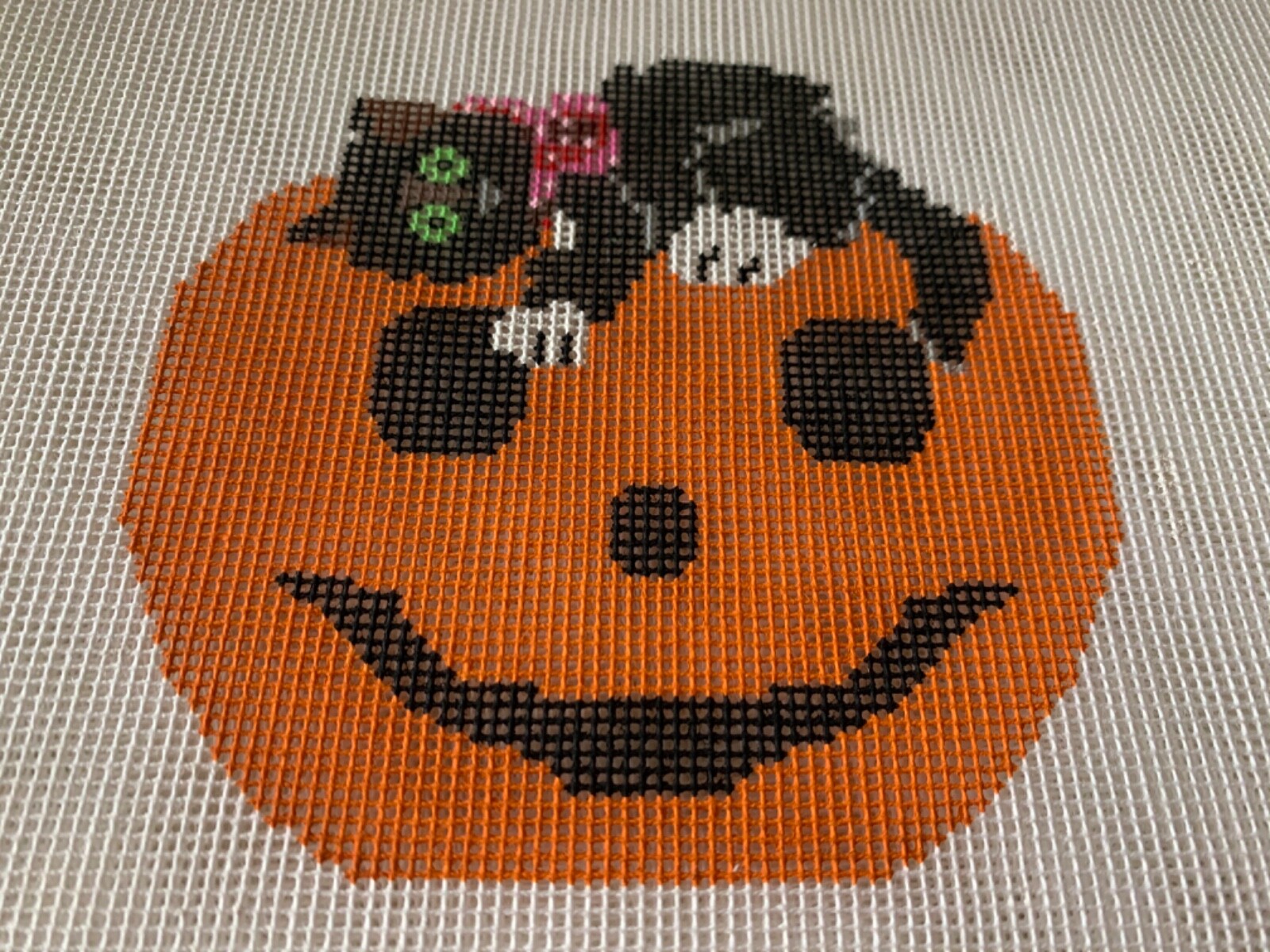 как выглядит Handpainted Needlepoint Canvas Cat Pumpkin Halloween,13ct Zweigart JWPO 020 фото