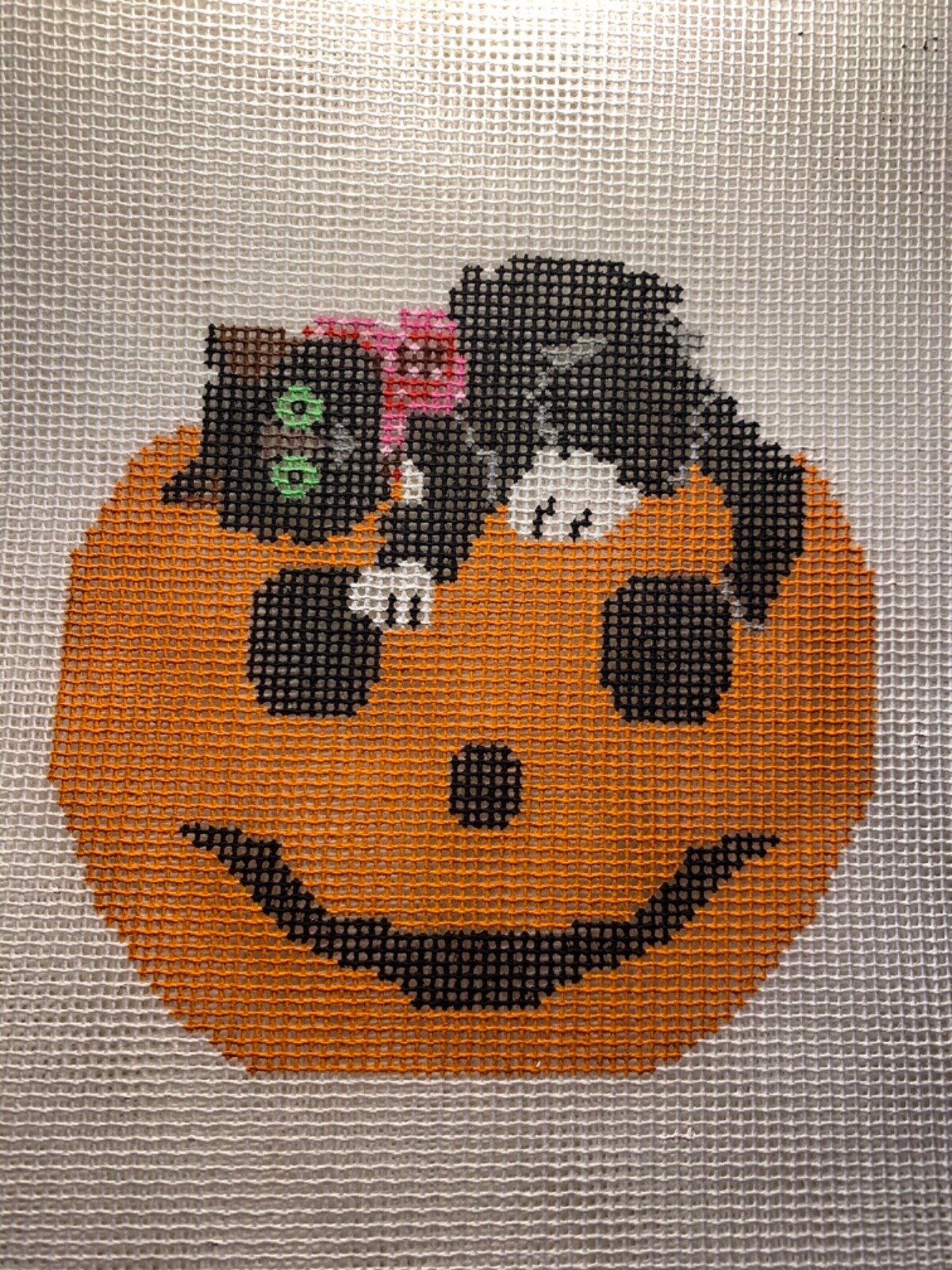 Handpainted Needlepoint Canvas Cat Pumpkin Halloween,13ct Zweigart JWPO 020