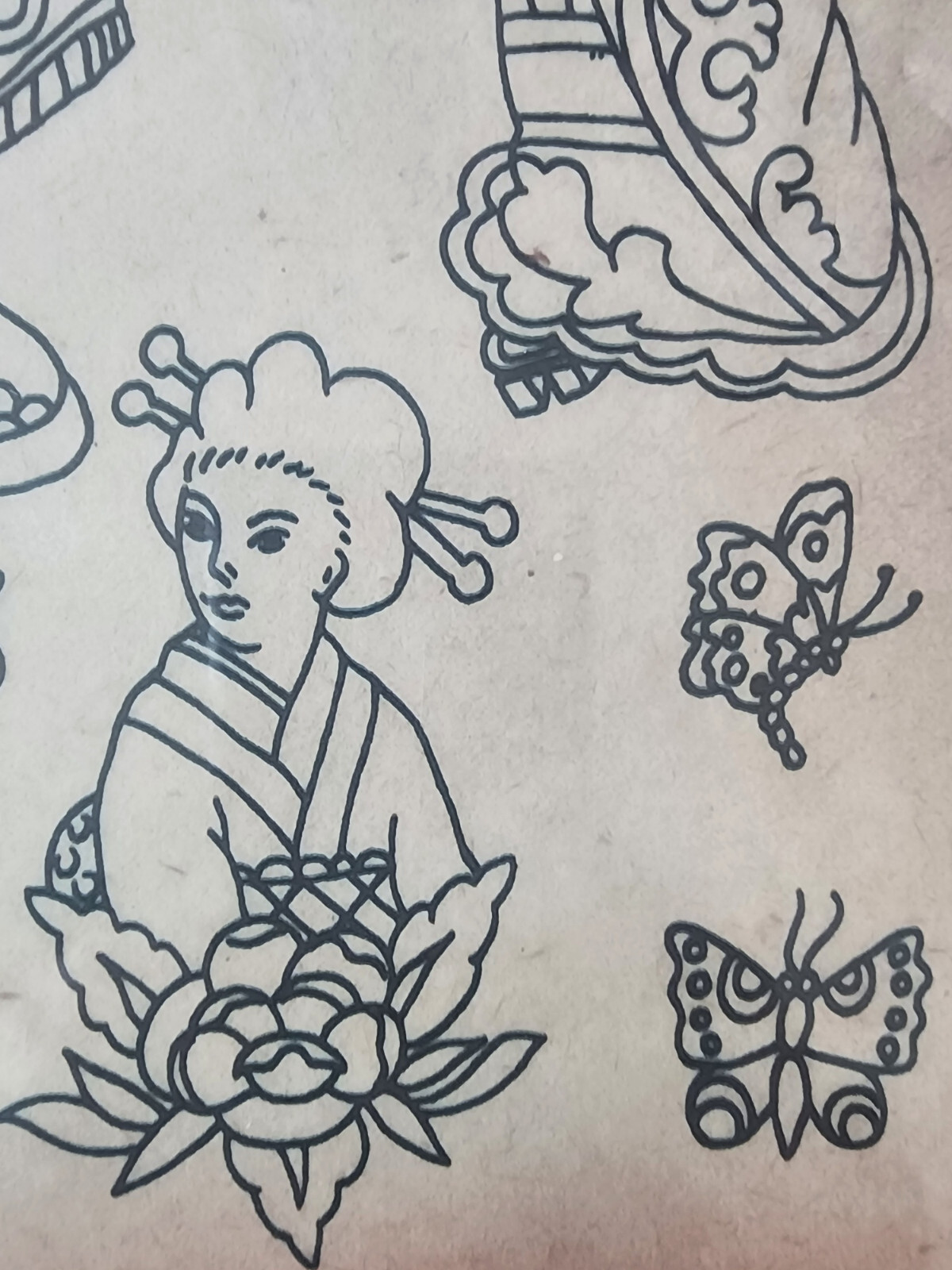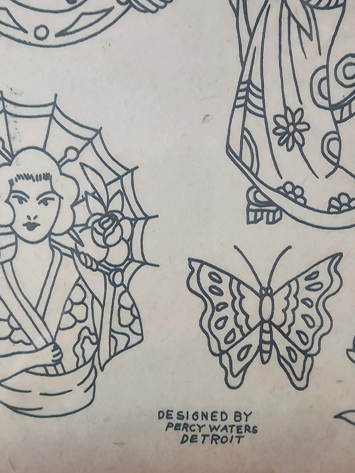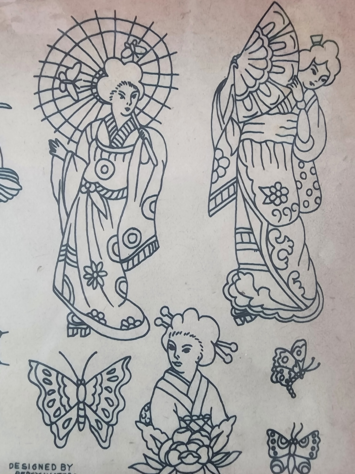 Percy Waters Traditional Vintage Tattoo Flash Production Sheet Japanese Geisha