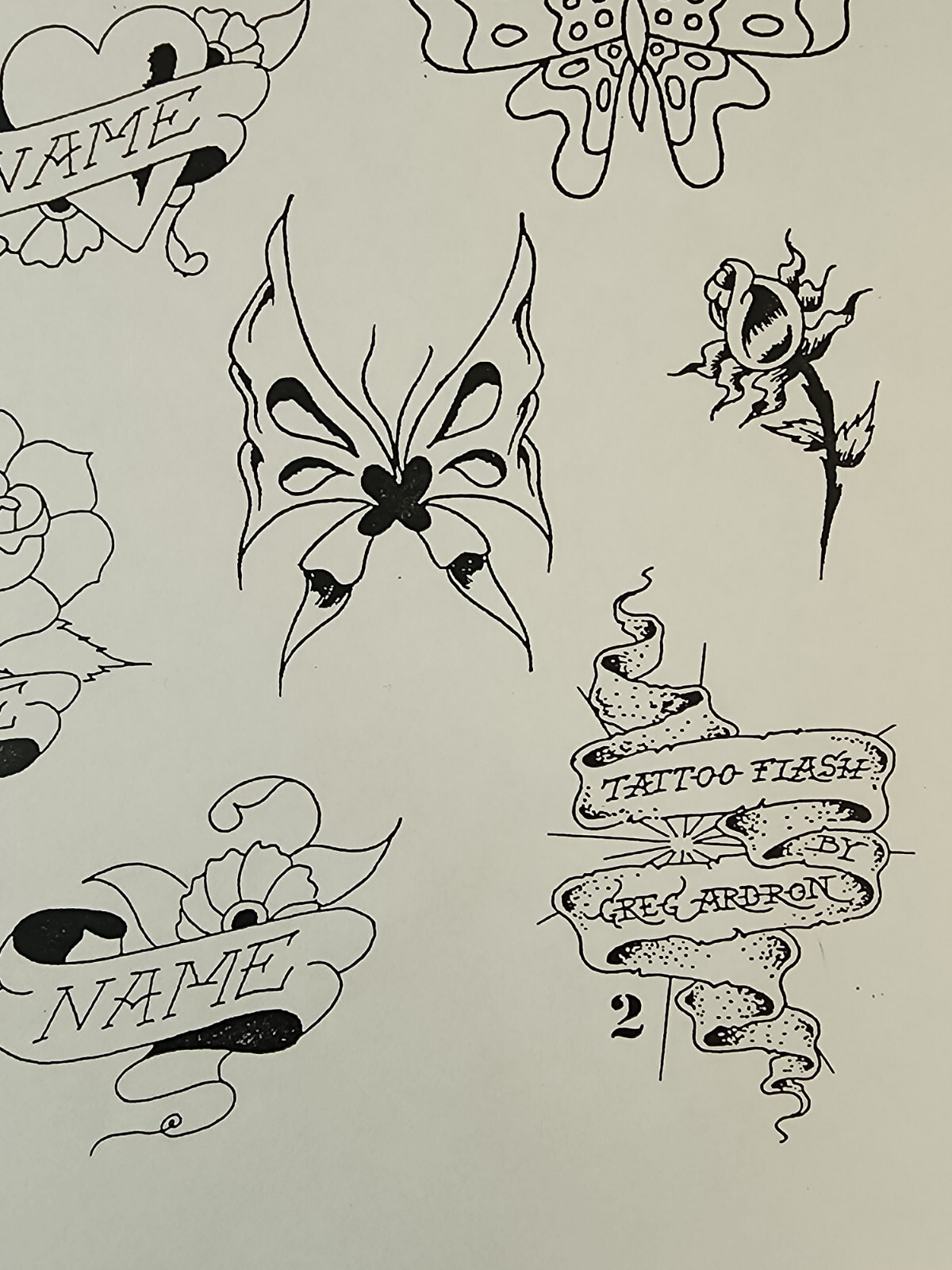 1989 OLD VINTAGE Greg Ardron Traditional Tattoo Flash Sheet Sydney AUS Girly