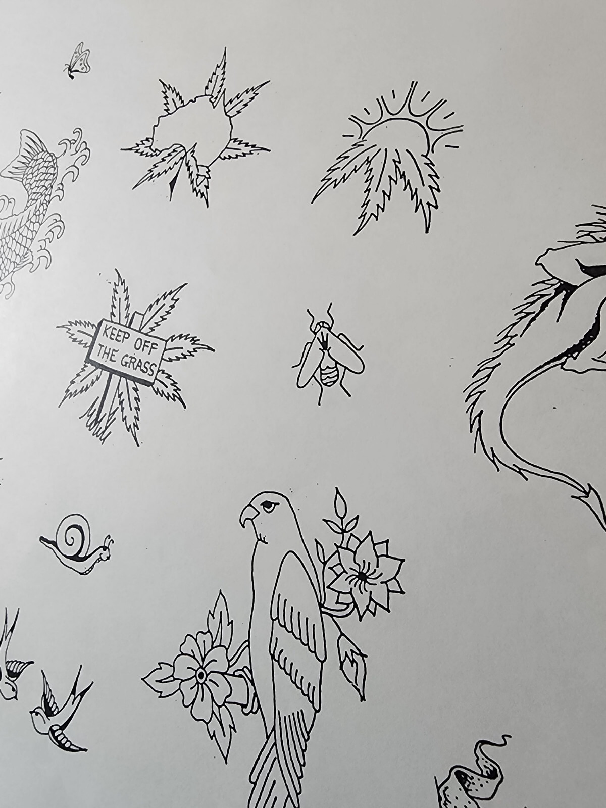 1989 OLD VINTAGE Greg Ardron Traditional Tattoo Flash Sheet Sydney AUS Weed