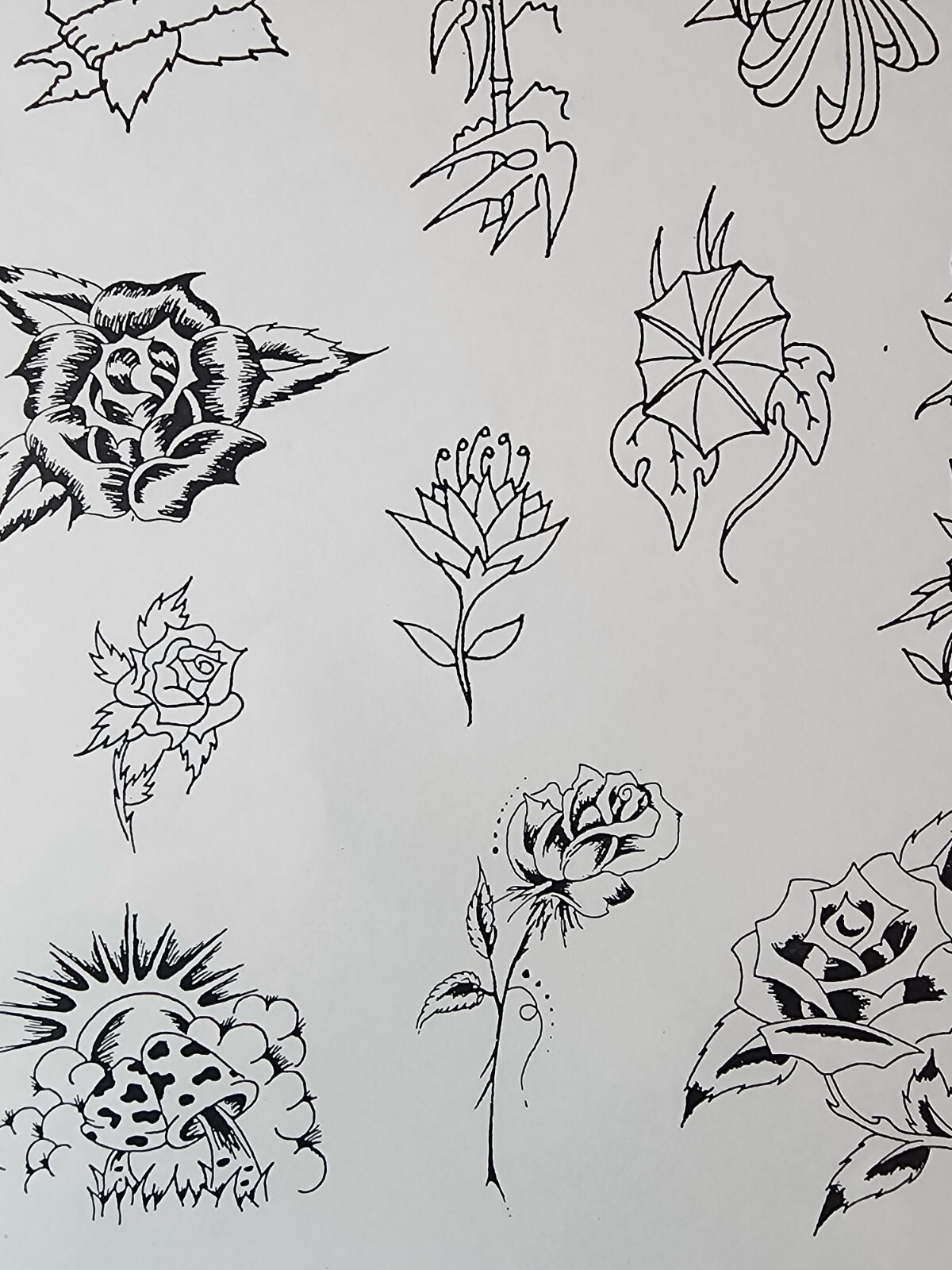 1989 OLD VINTAGE Greg Ardron Traditional Tattoo Flash Sheet Sydney AUS Flowers