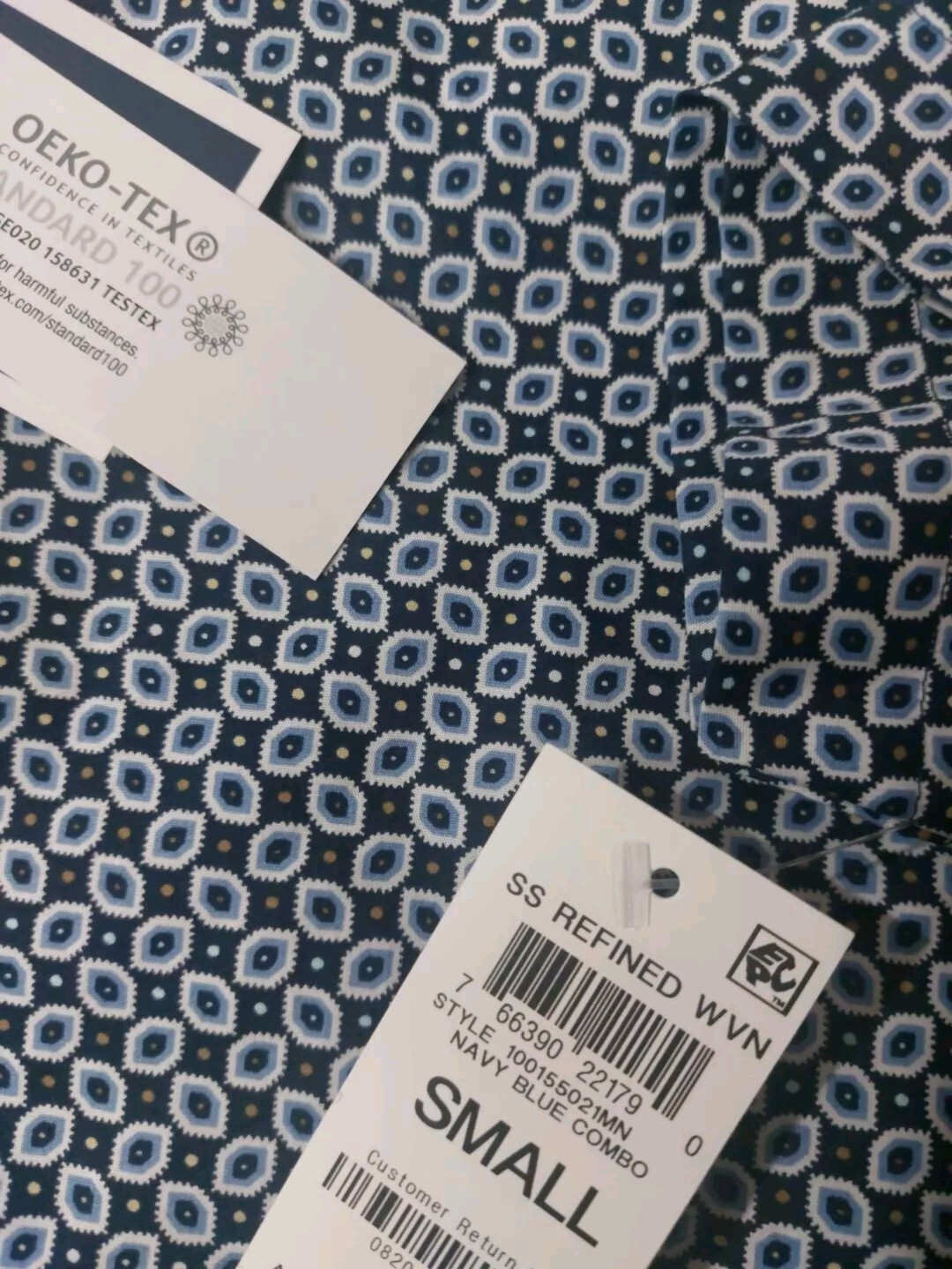 как выглядит Club Room Mens Geometric Short-Sleeve Button-Up Shirt Stretch Navy Blue Small фото
