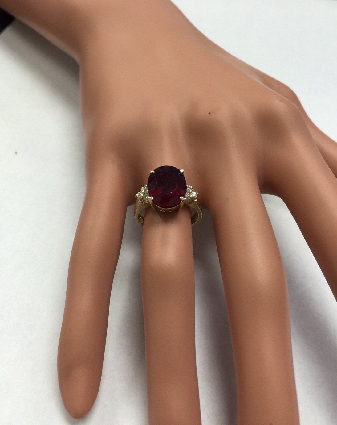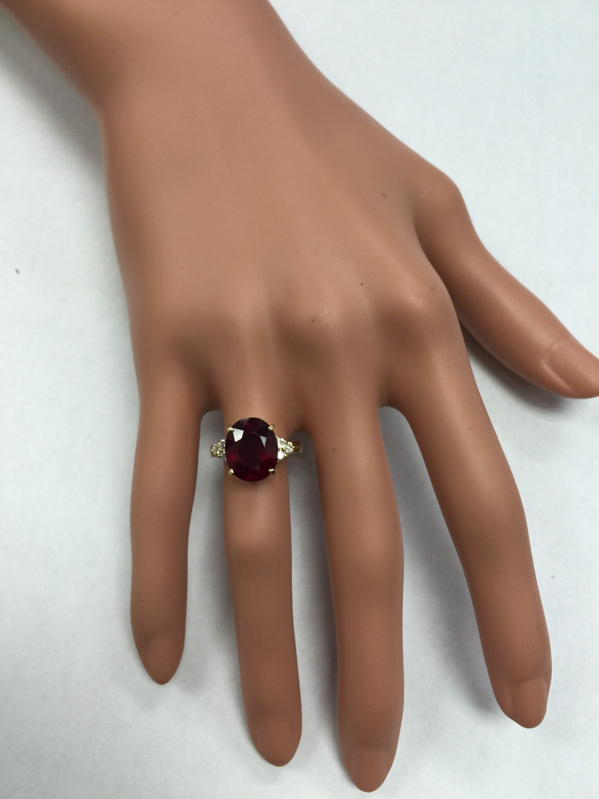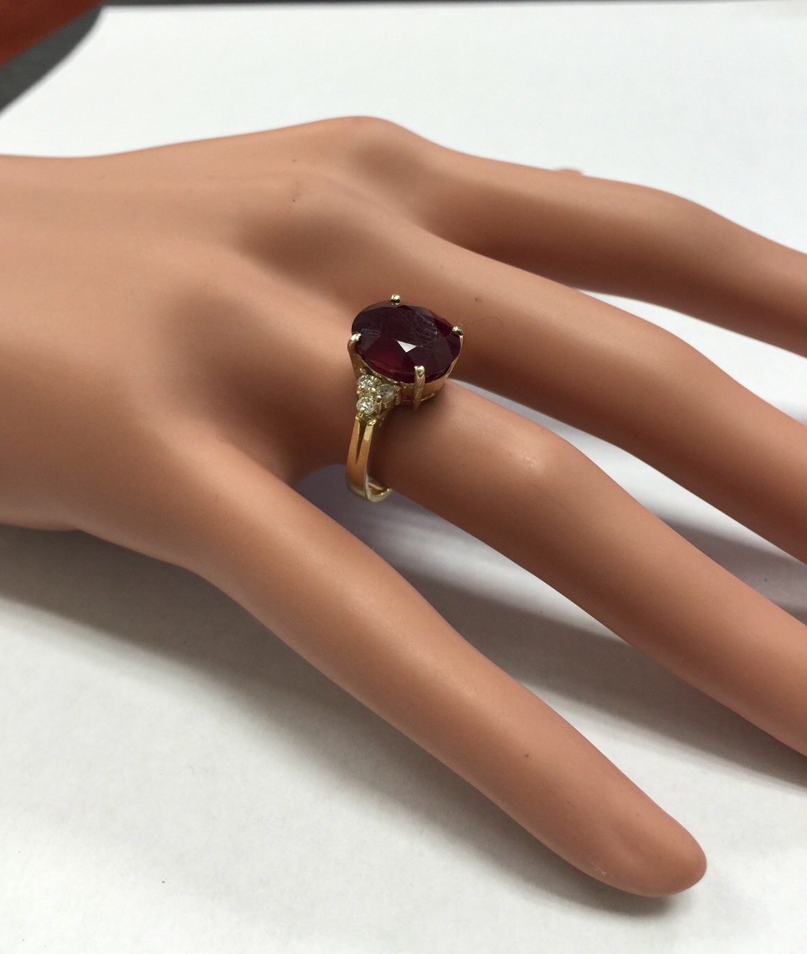 как выглядит 6.50 Carats Red Ruby and Diamond 14K Solid Yellow Gold Ring фото