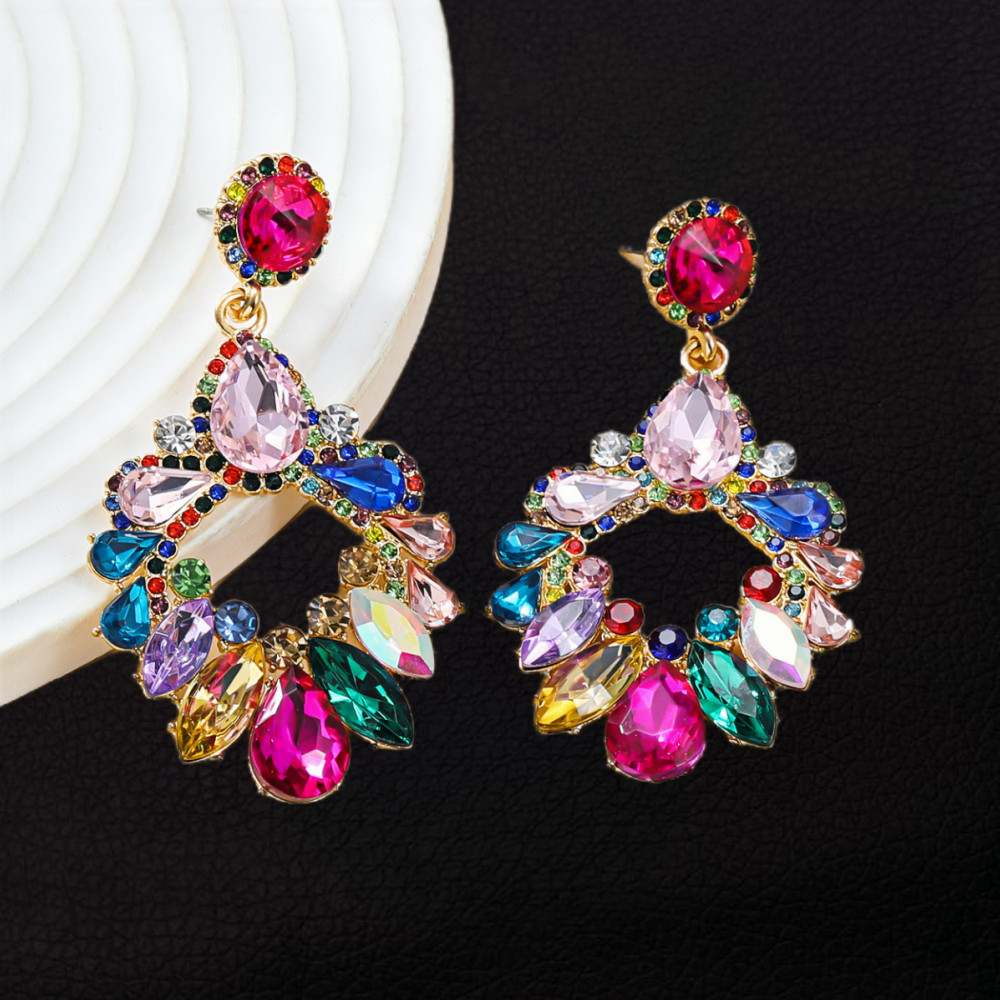 Women's Colorful Rhinestone Flower Teardrop Dangle Earrings