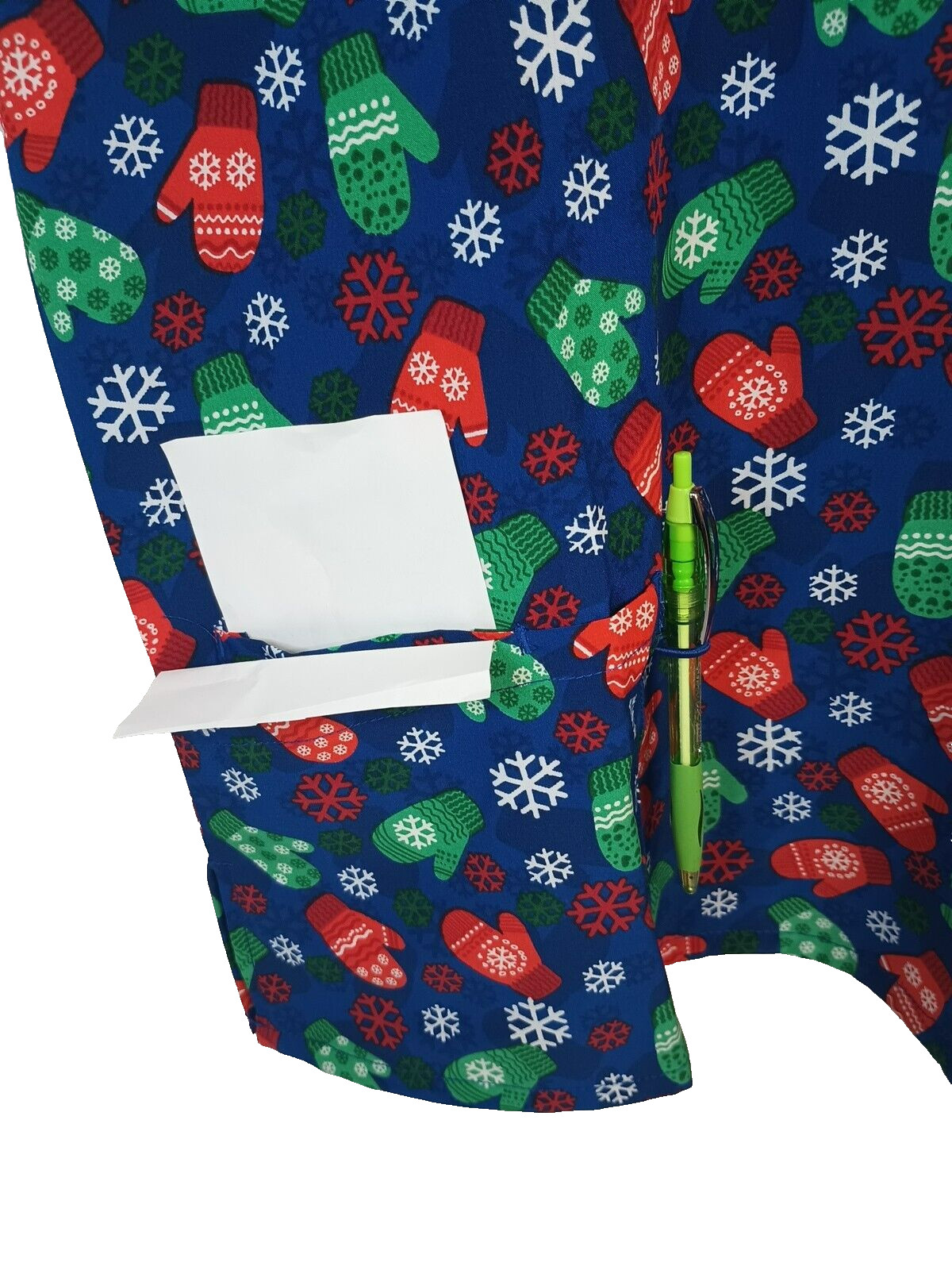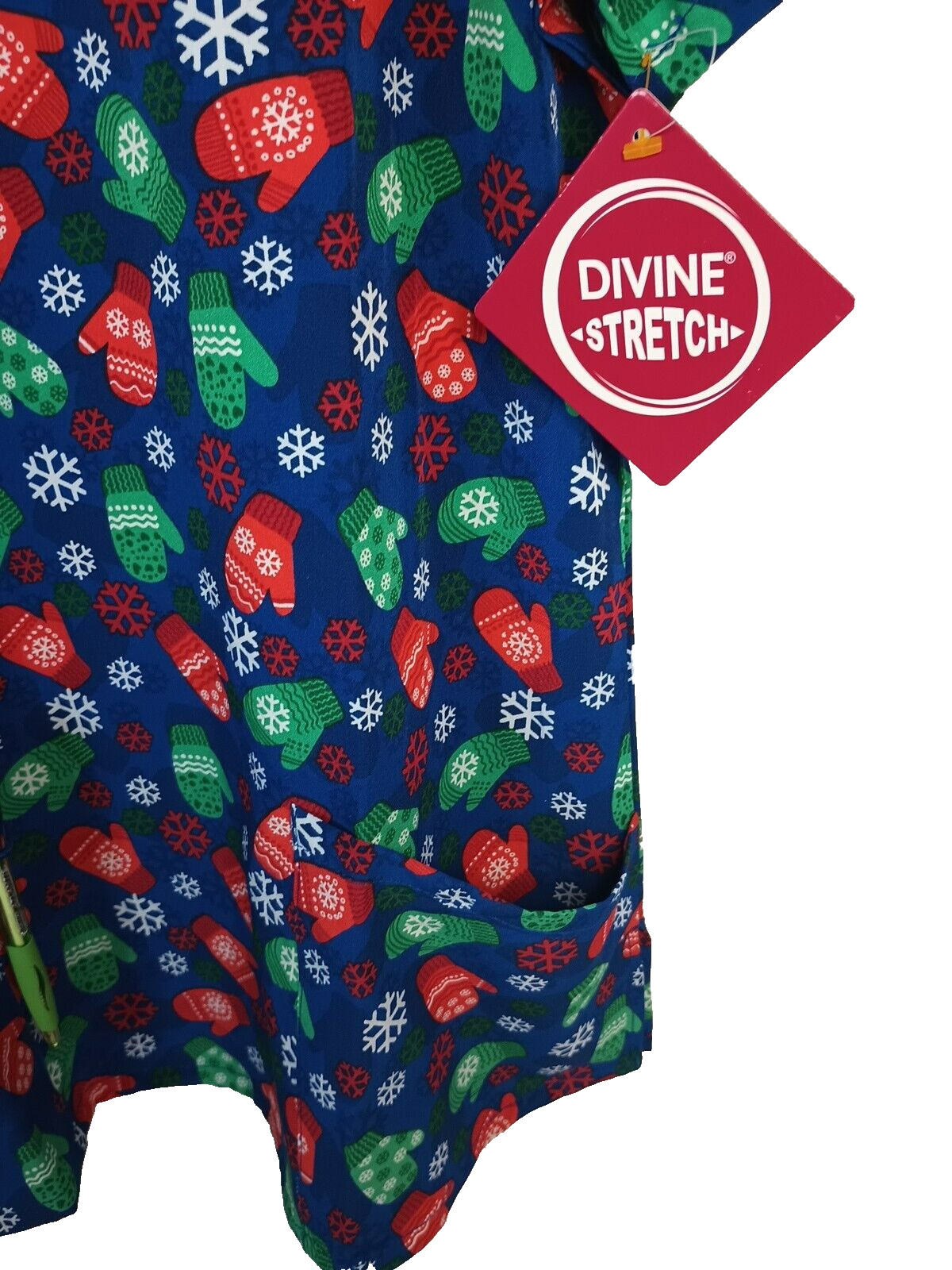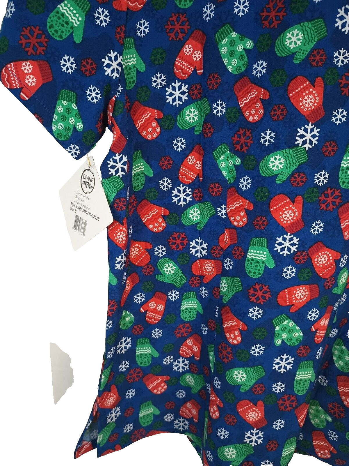 Blue Christmas Scrub Mittens and Snowflakes Top S New Divine Stretch