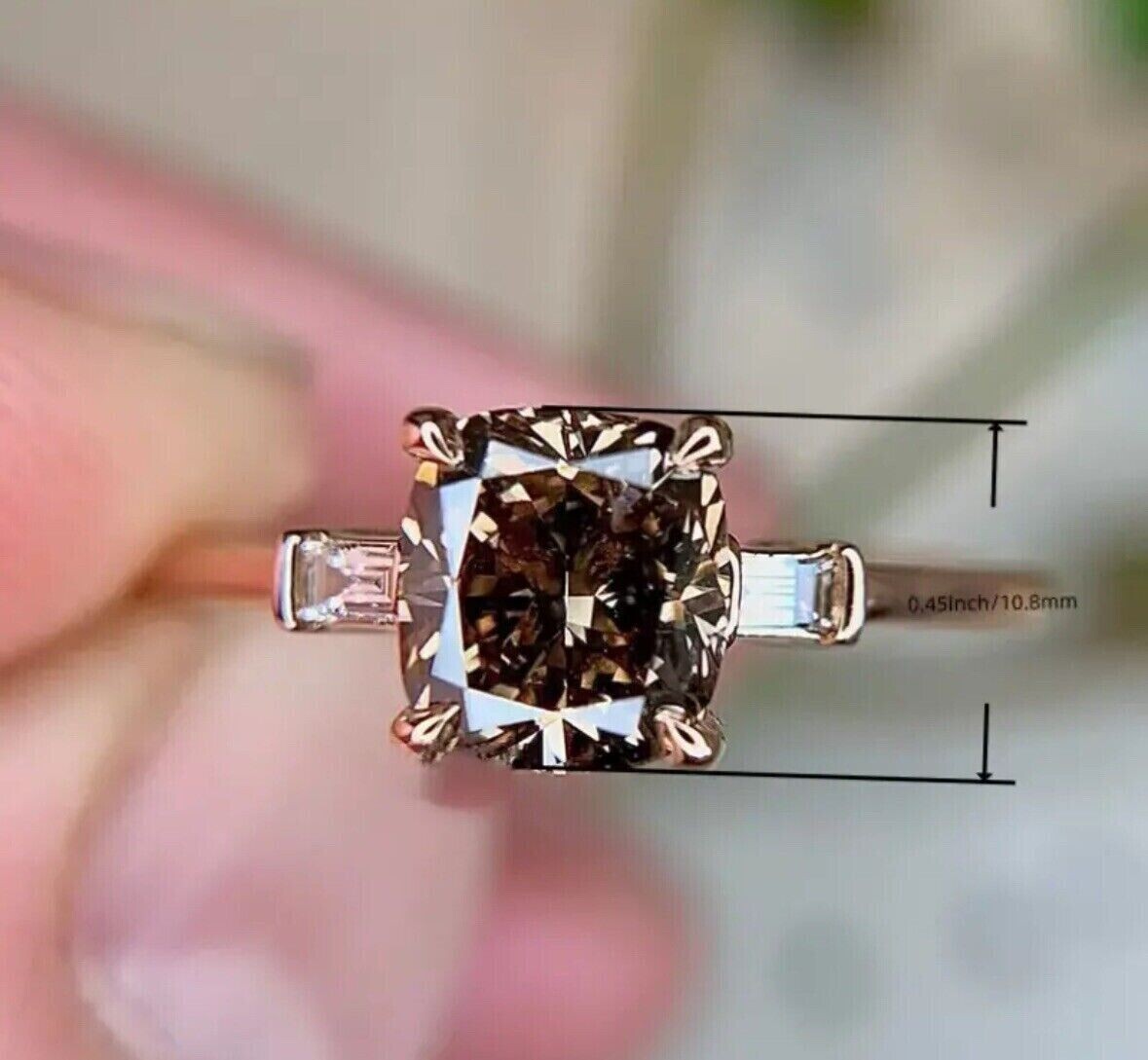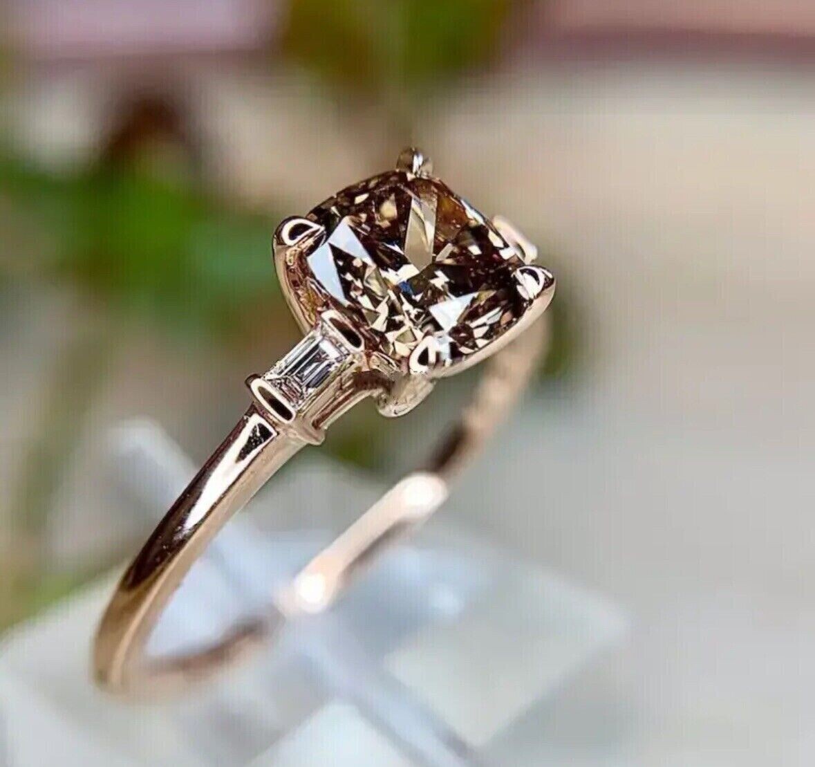 как выглядит 2Ct Cushion Simulated Chocolate Diamond Women Wedding Ring 14K Rose Gold Plated фото