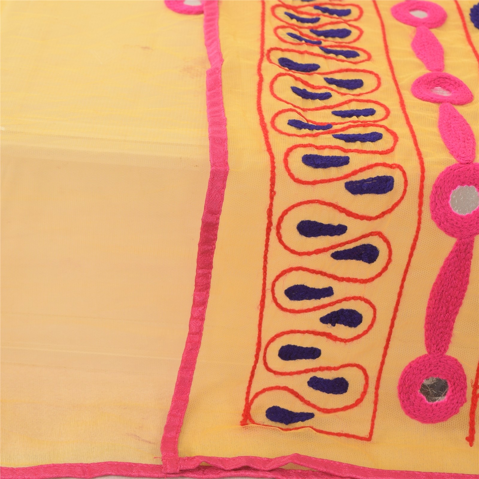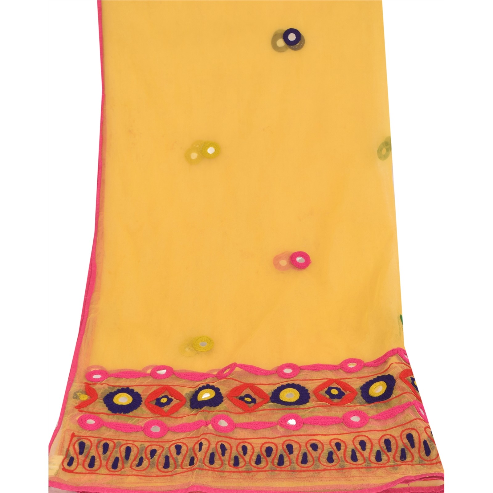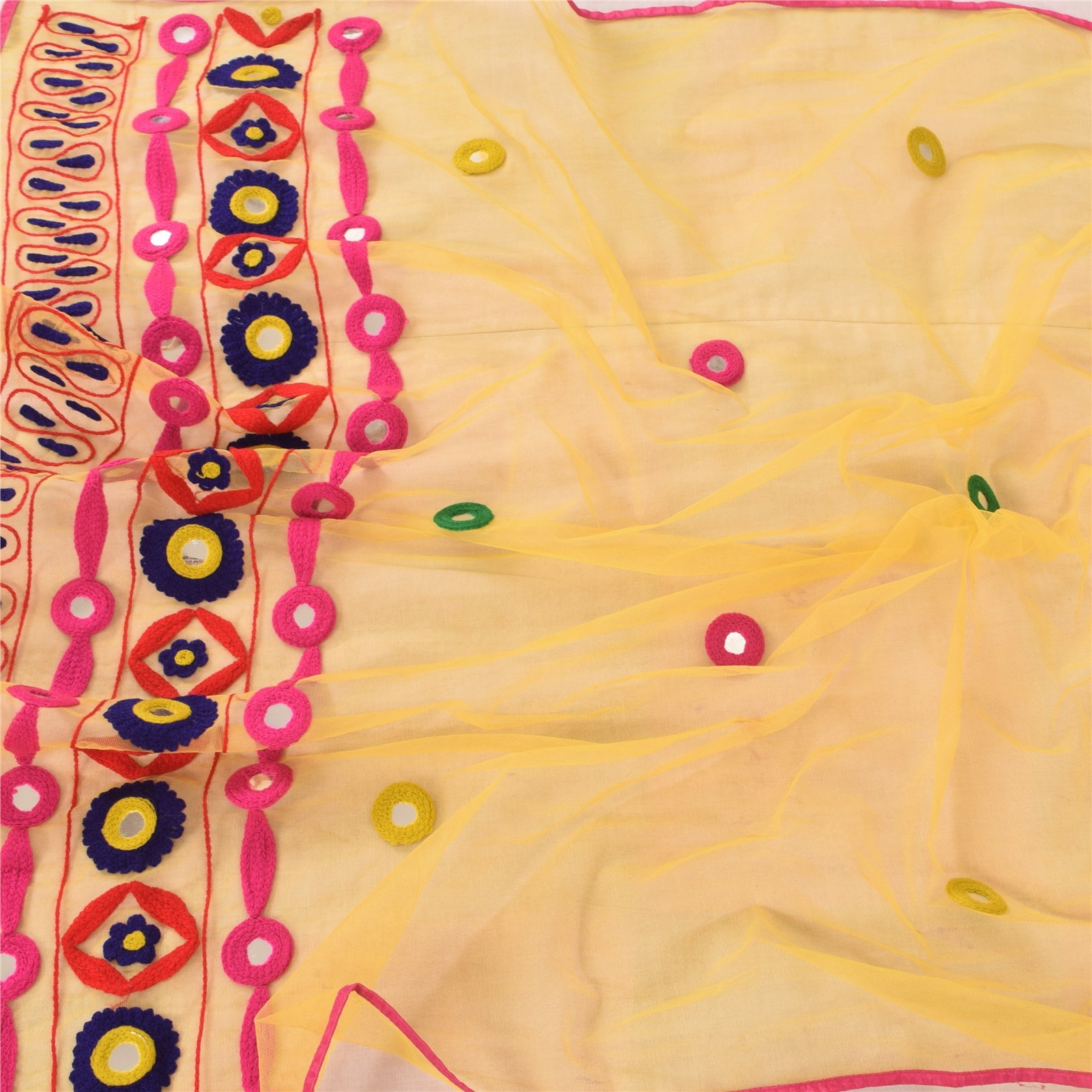 Sanskriti Vintage Yellow Dupatta Long Stole Net Mesh Hand Embroidered Wrap Veil
