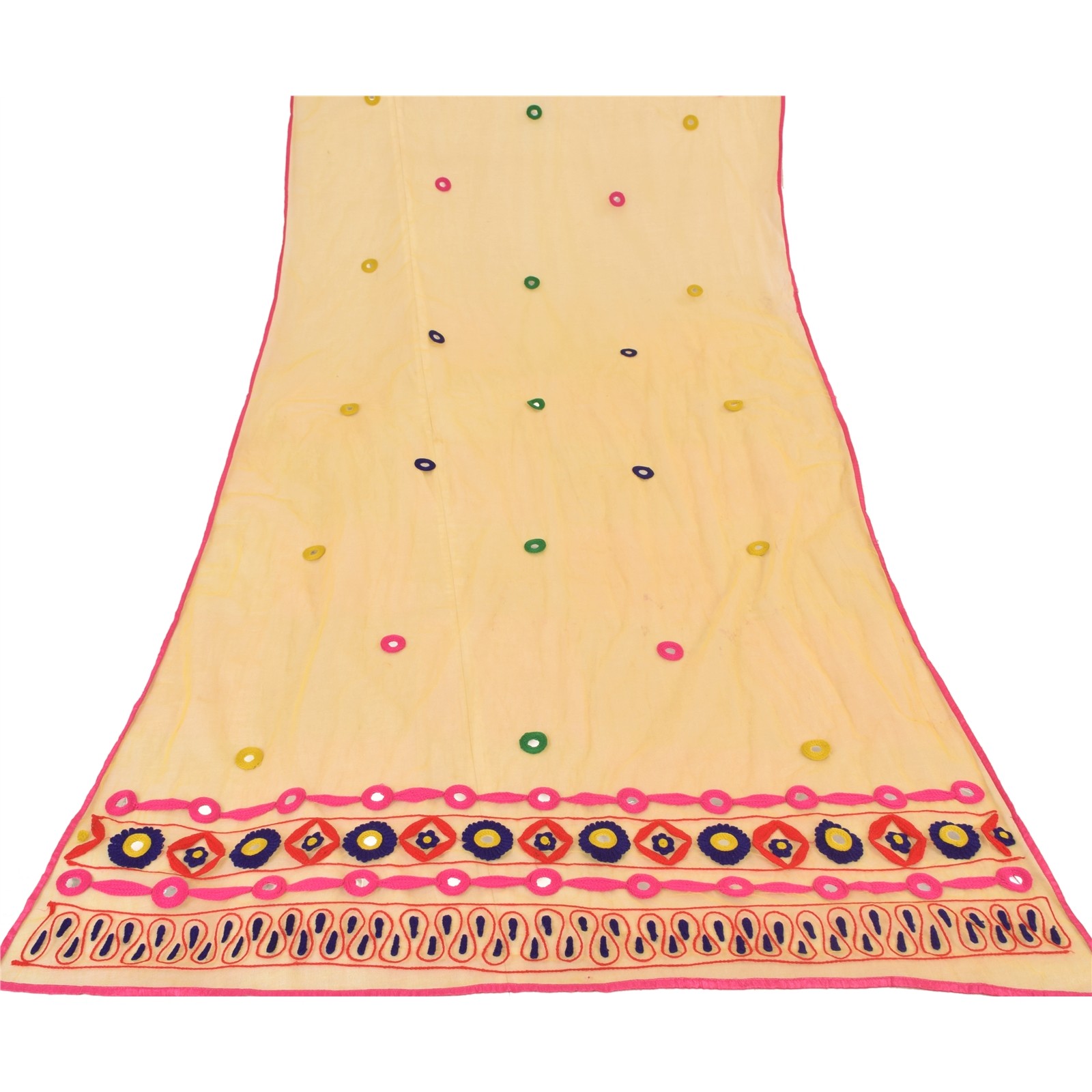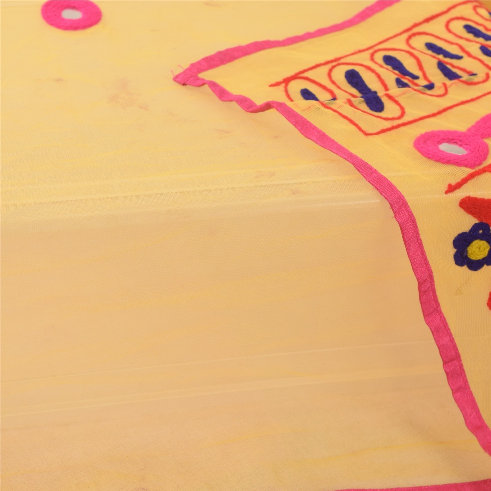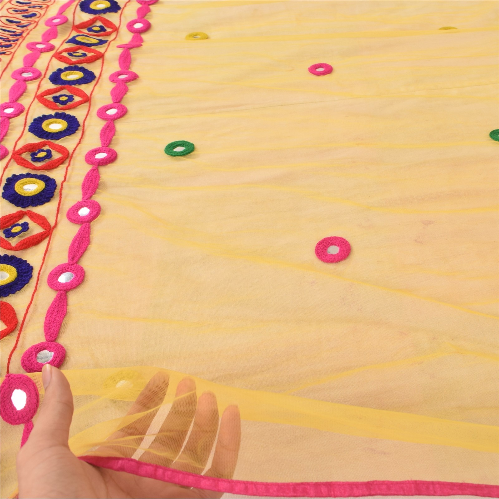 Sanskriti Vintage Yellow Dupatta Long Stole Net Mesh Hand Embroidered Wrap Veil
