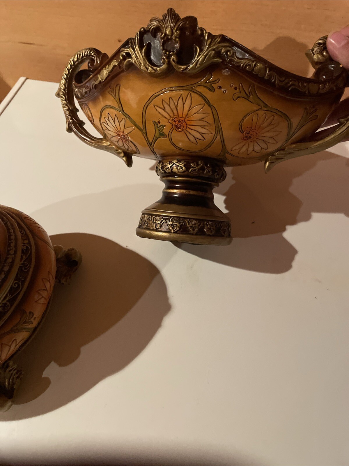 как выглядит 2 Beautiful Carved Wooden Pieces. A Bowl And Urn Vessel фото