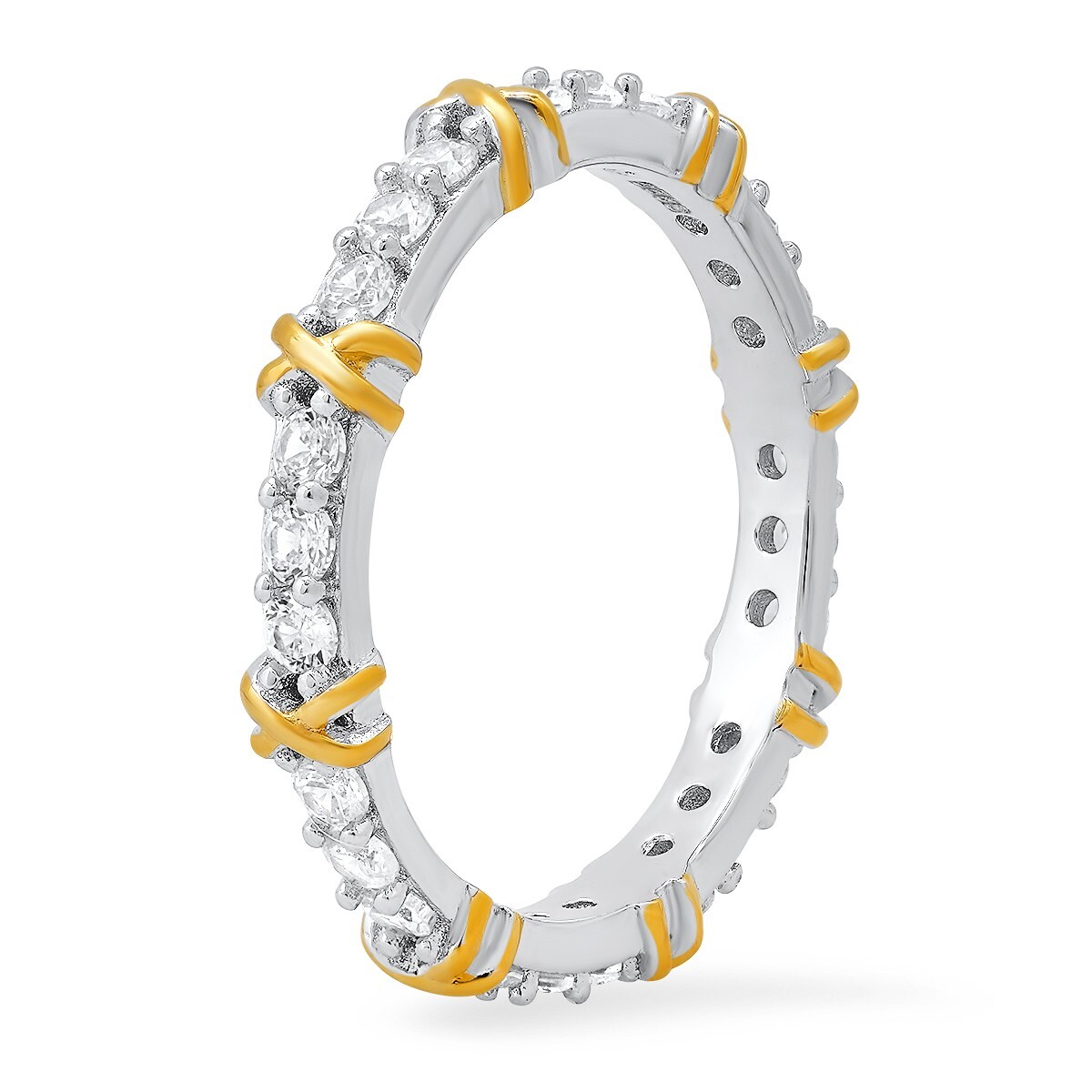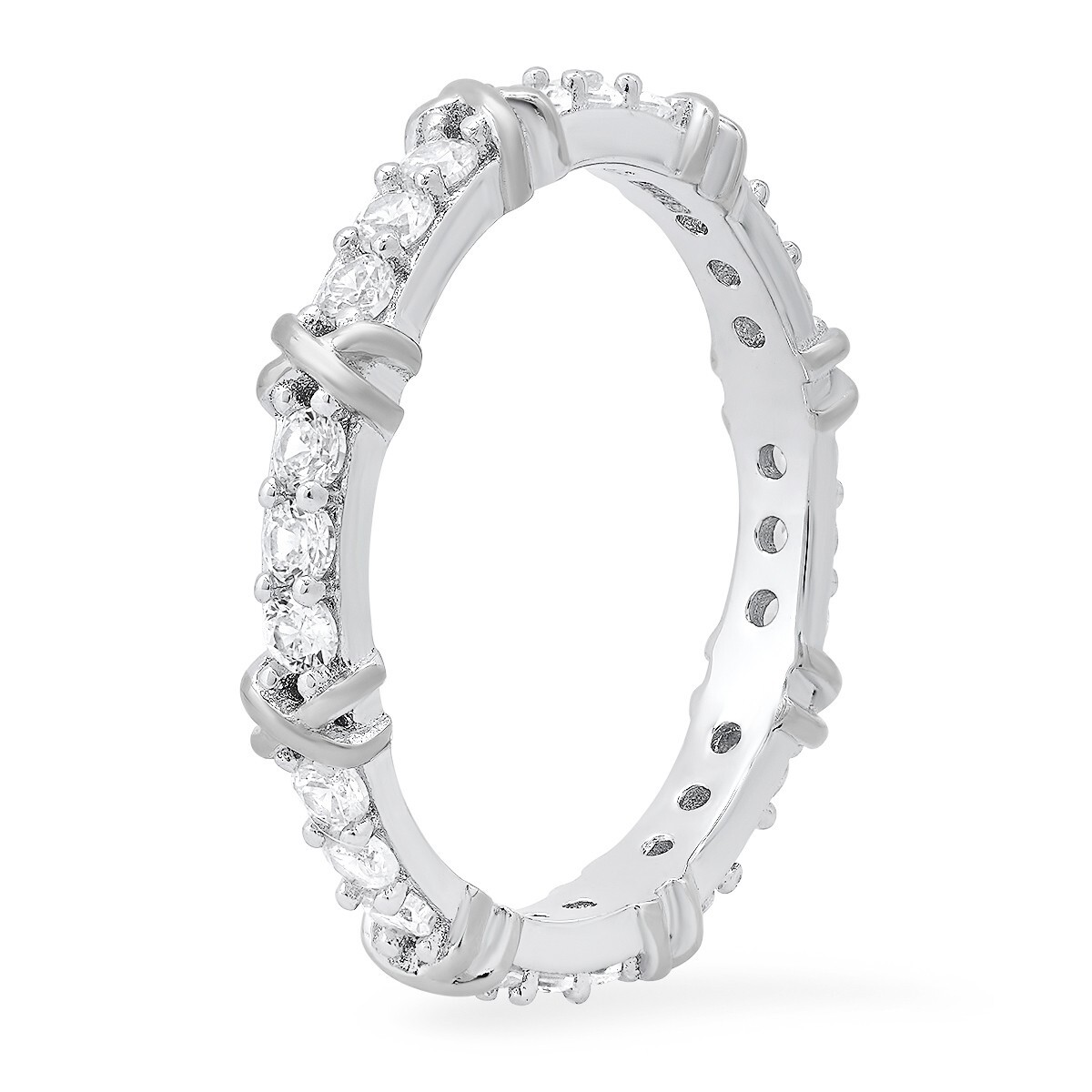 Round-cut CZ X Stackable Eternity Band Ring - 925 Sterling Silver