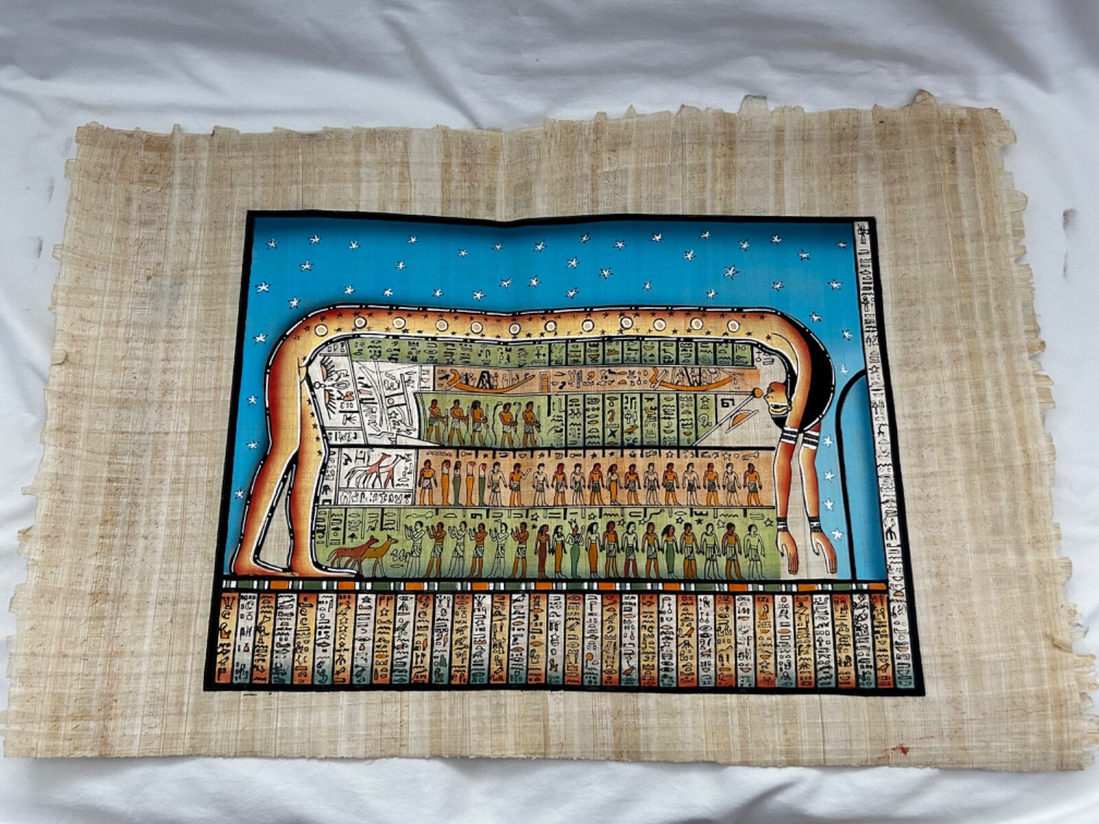 Egyptian Papyrus Paper Hand Painting Pharaoh Goodness Nut Sky 25X17