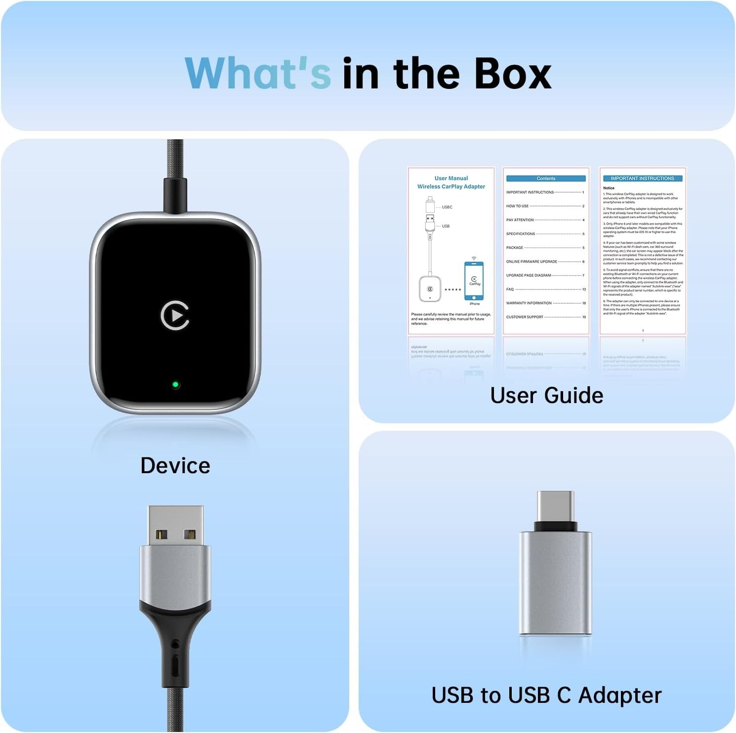 Wireless CarPlay Adapter with USB-C Adapter Included, 2023 Version for Cars in 2