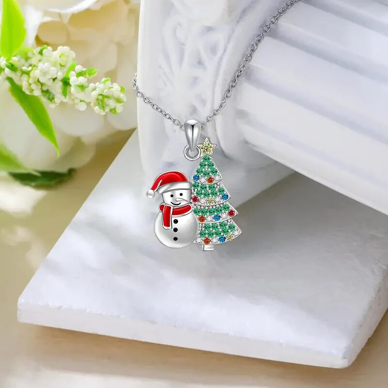 Chic 3pcs Christmas Tree Snowman Jewelry Set Alloy Necklace and Earrings