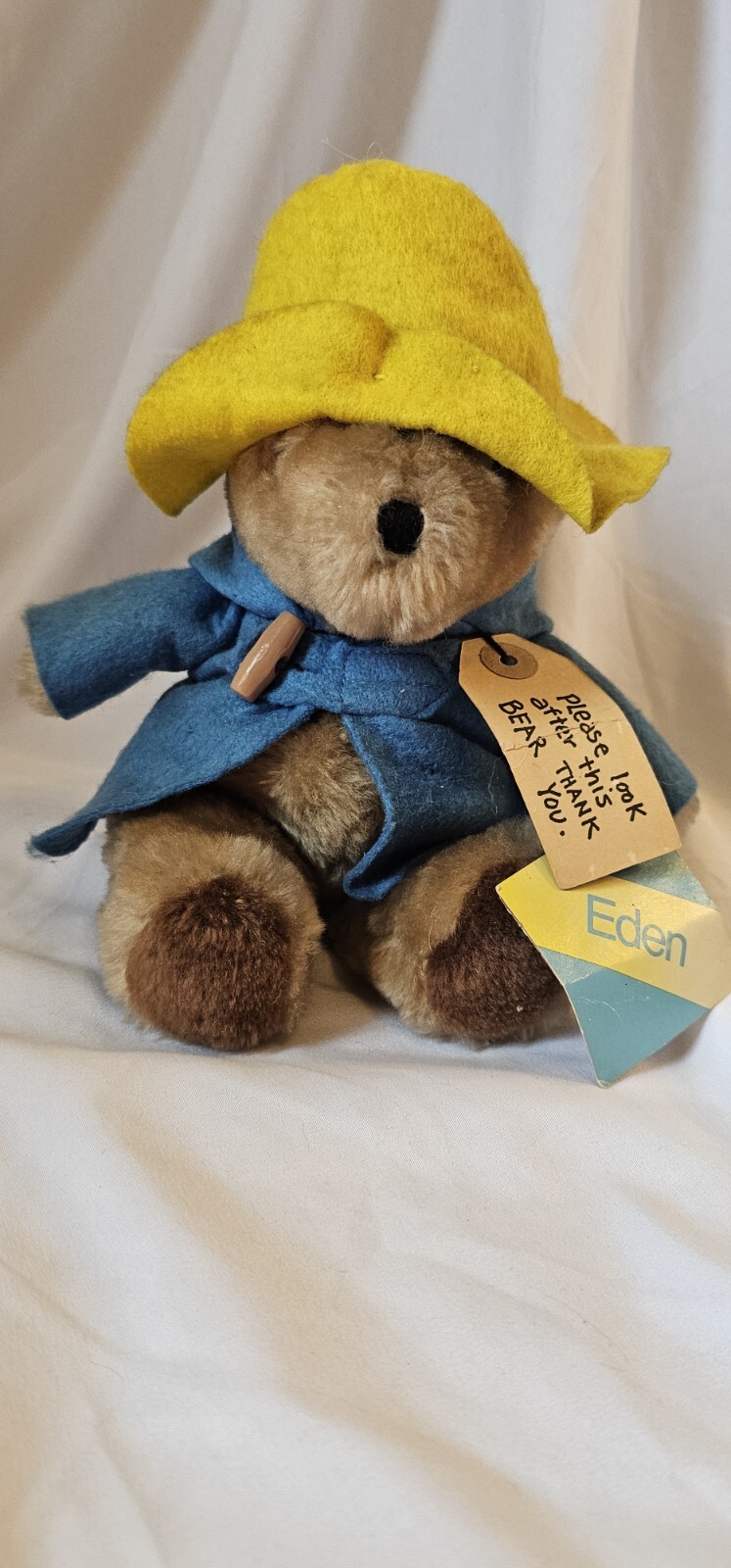 1975, 1981 Eden Toys Paddington Bear Blue Jacket Yellow Hat 10 Plush Vtg NWT