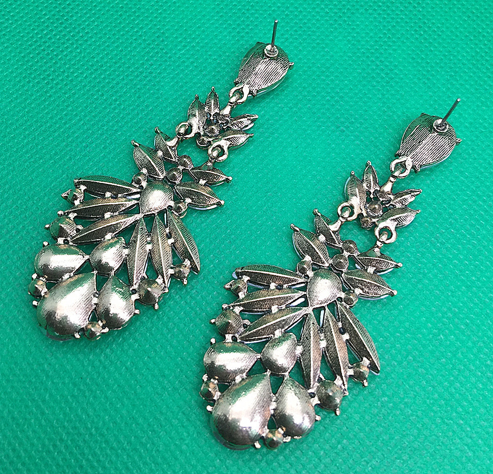 как выглядит AB Crystal Rhinestone Flower Leaf Dangle Drop Earrings фото