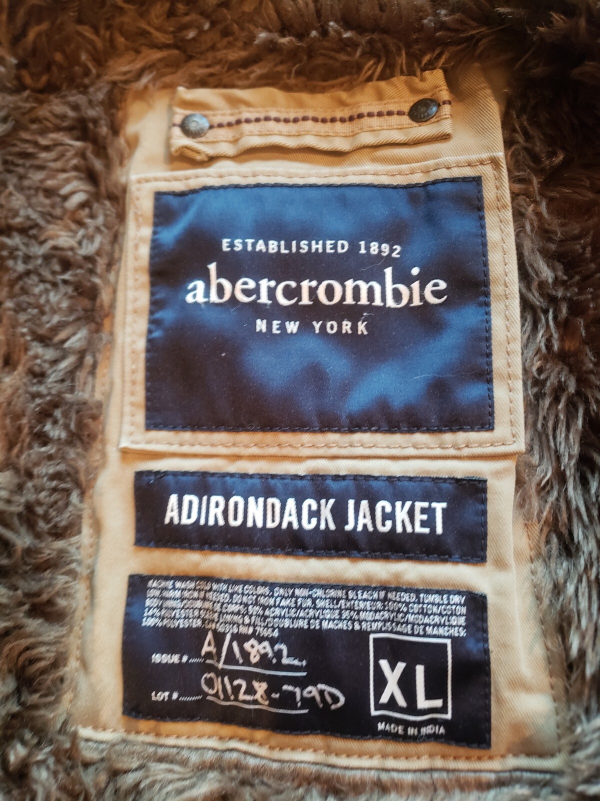 как выглядит Abercrombie New York Youth Adirondack Jacket XL "Fur" Lining Tan Khaki Vintage фото