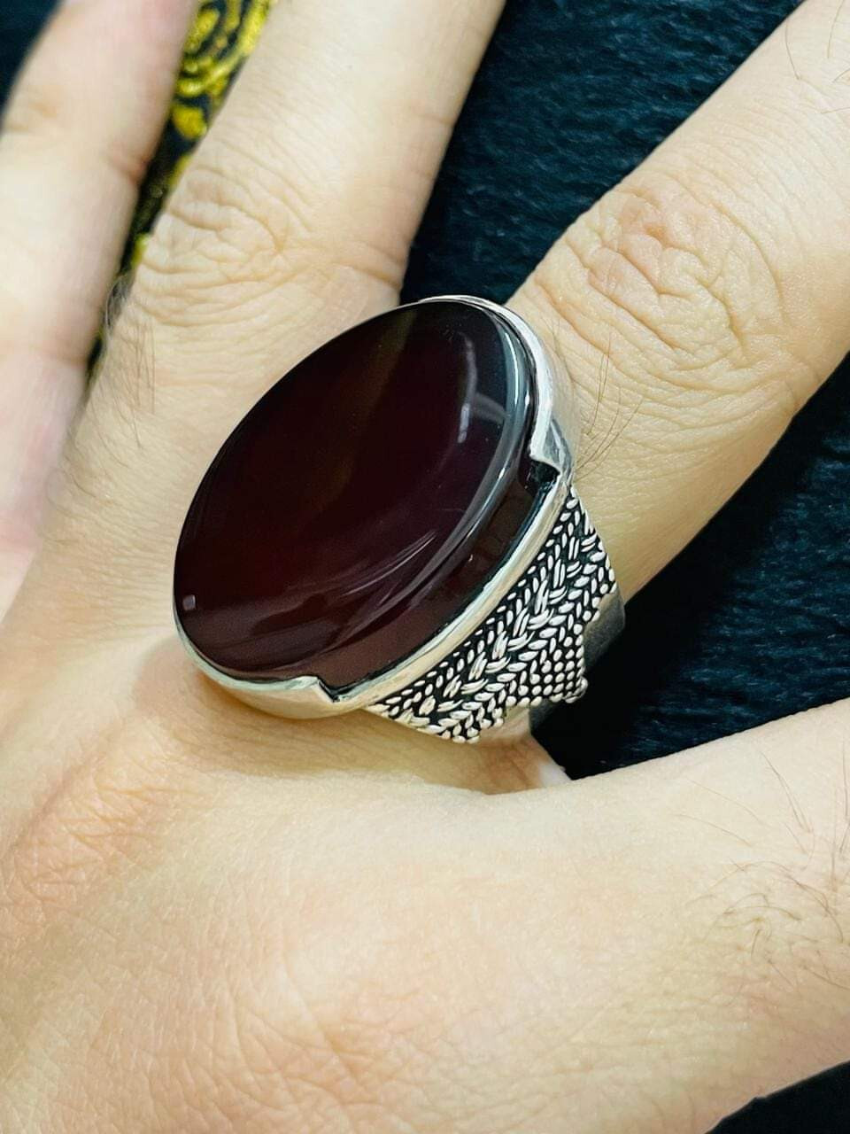 как выглядит Natural Aqeeq Ring - Authentic Yemeni Agate - Handcrafted in Sterling Silver фото