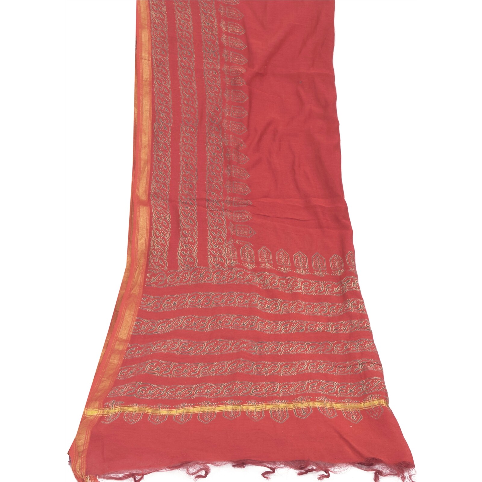 Sanskriti Vintage Long Dark Red Dupatta Stole Pure Cotton Hand-Block Print Veil