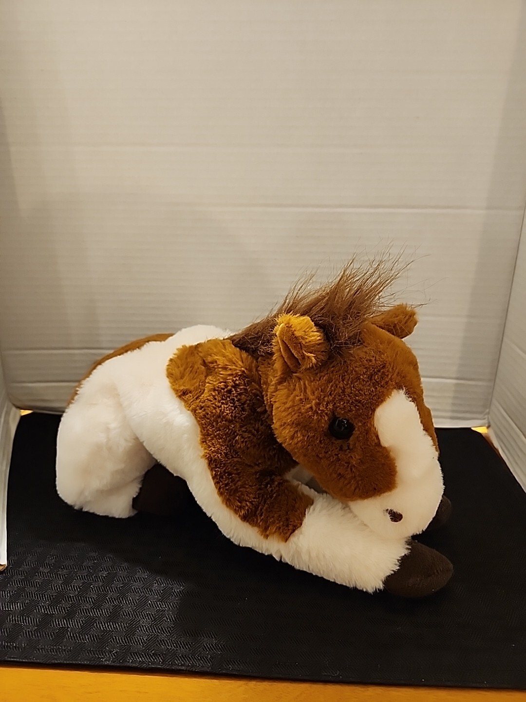 как выглядит FAO Schwarz Pony Plush 14 inch Stuffed Animal Brown White Lying Down фото