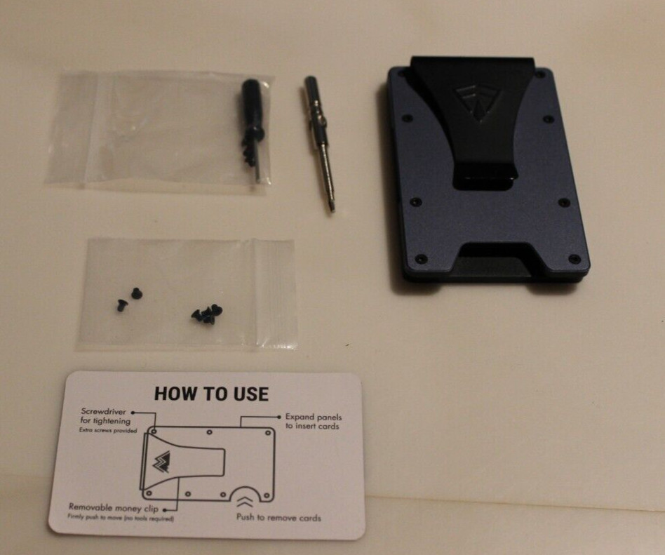 Mountain Voyage Minimalist Wallet Slim Black/Gray Extra Screws Instructions Box