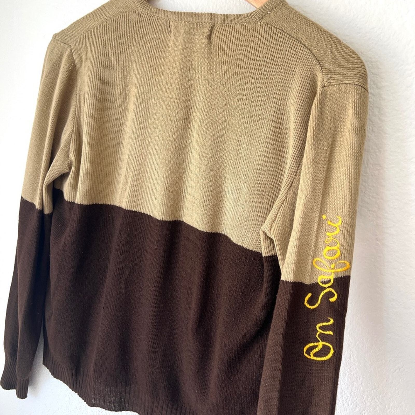 как выглядит VINTAGE sweater / 70s Brown Giraffe Safari Novelty Sweater / Size M фото