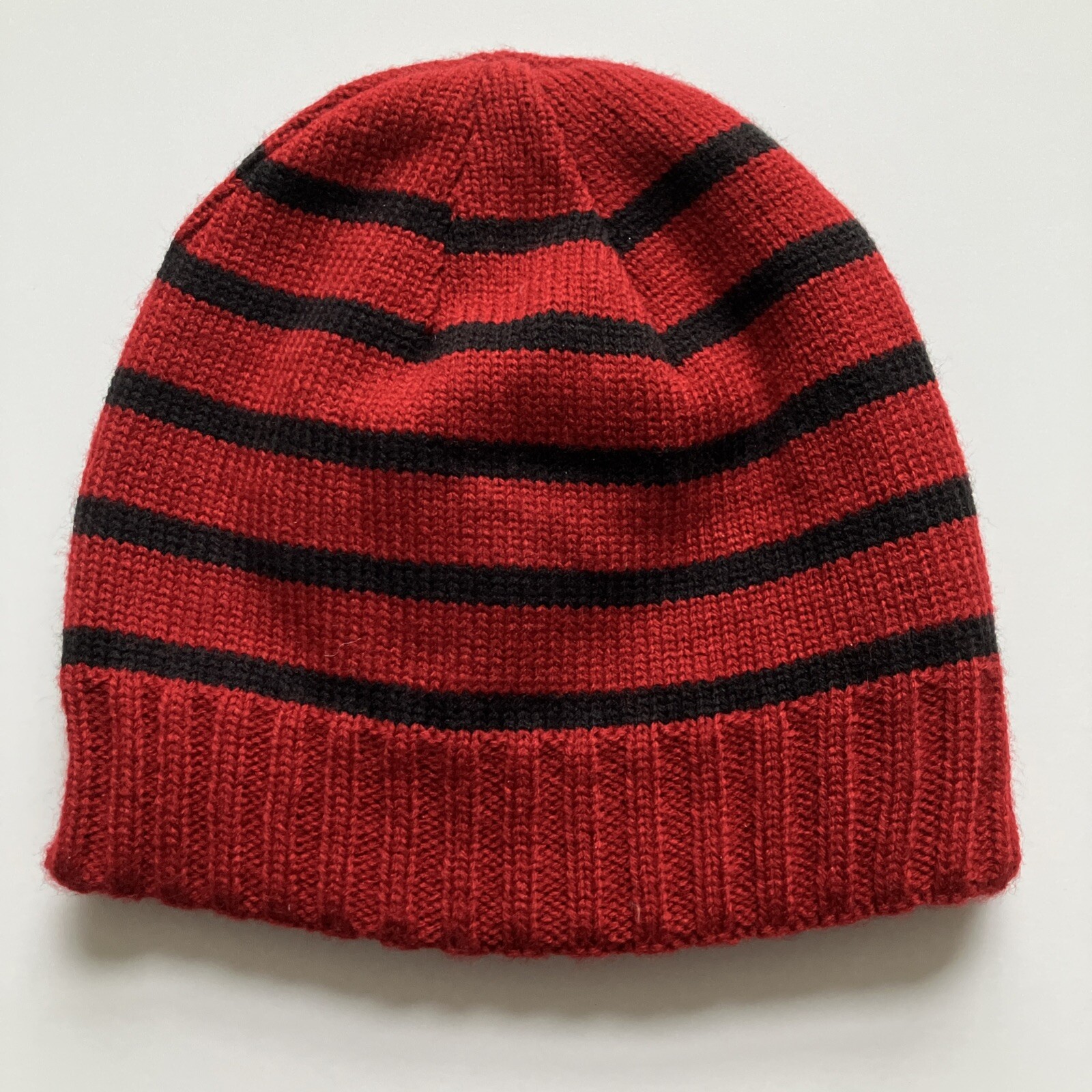Knit Winter Hat Beanie Cap Reversible Red/Navy Stripe One Size Boys 4-16