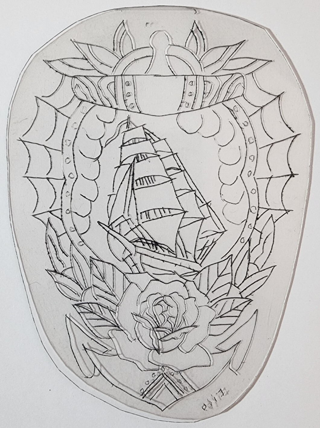 OLD VINTAGE Original Traditional Acetate Tattoo Stencil Sailor Clipper Ship 4