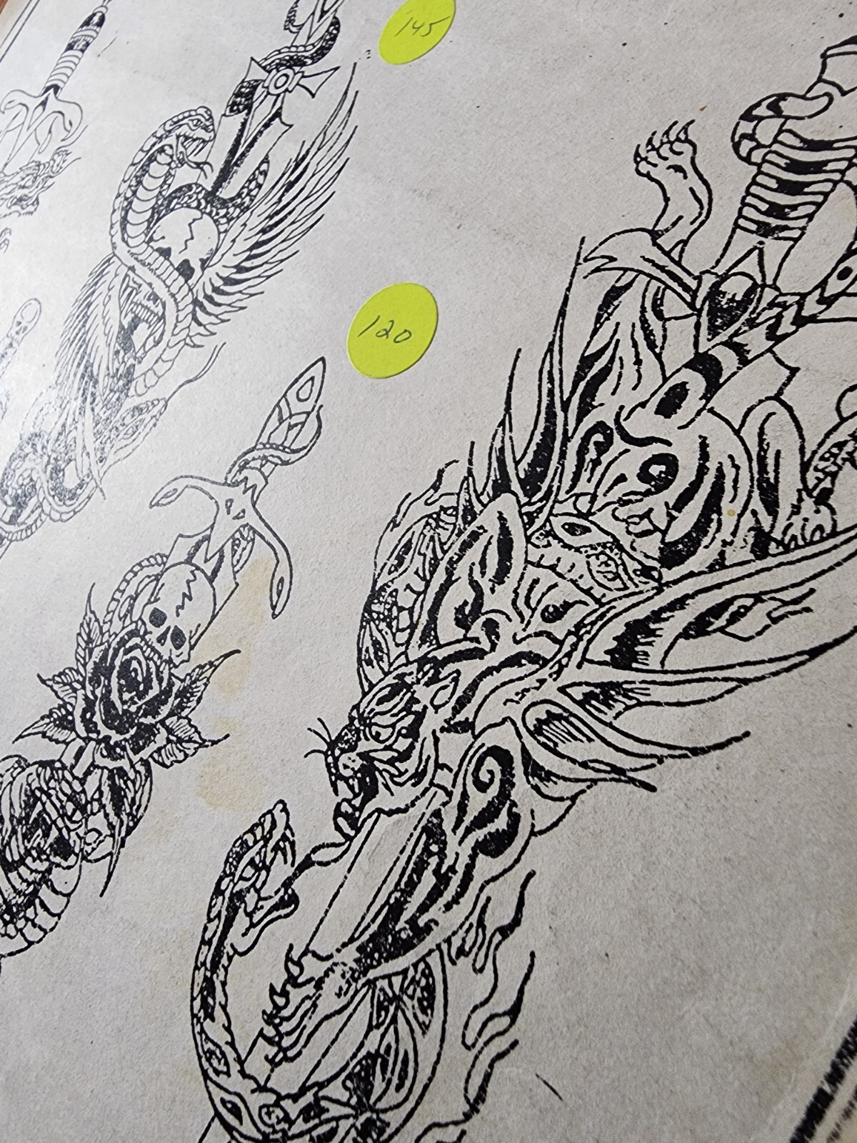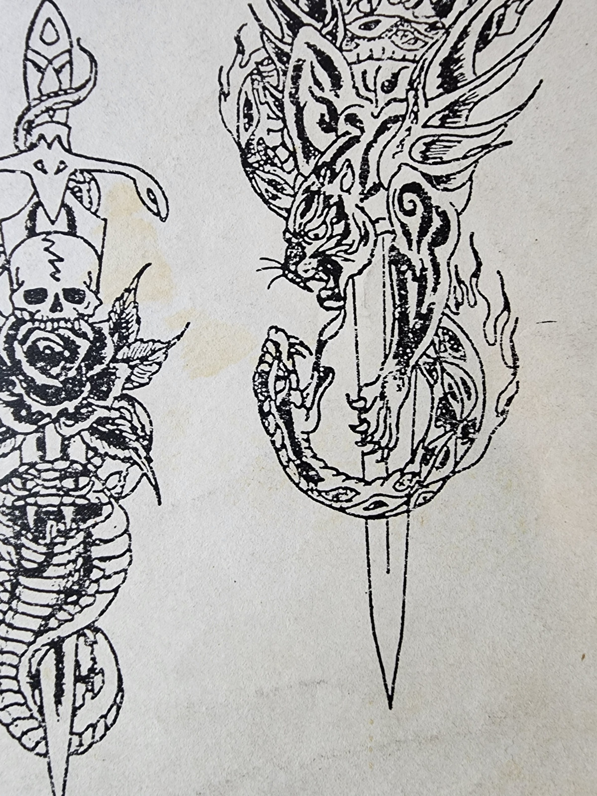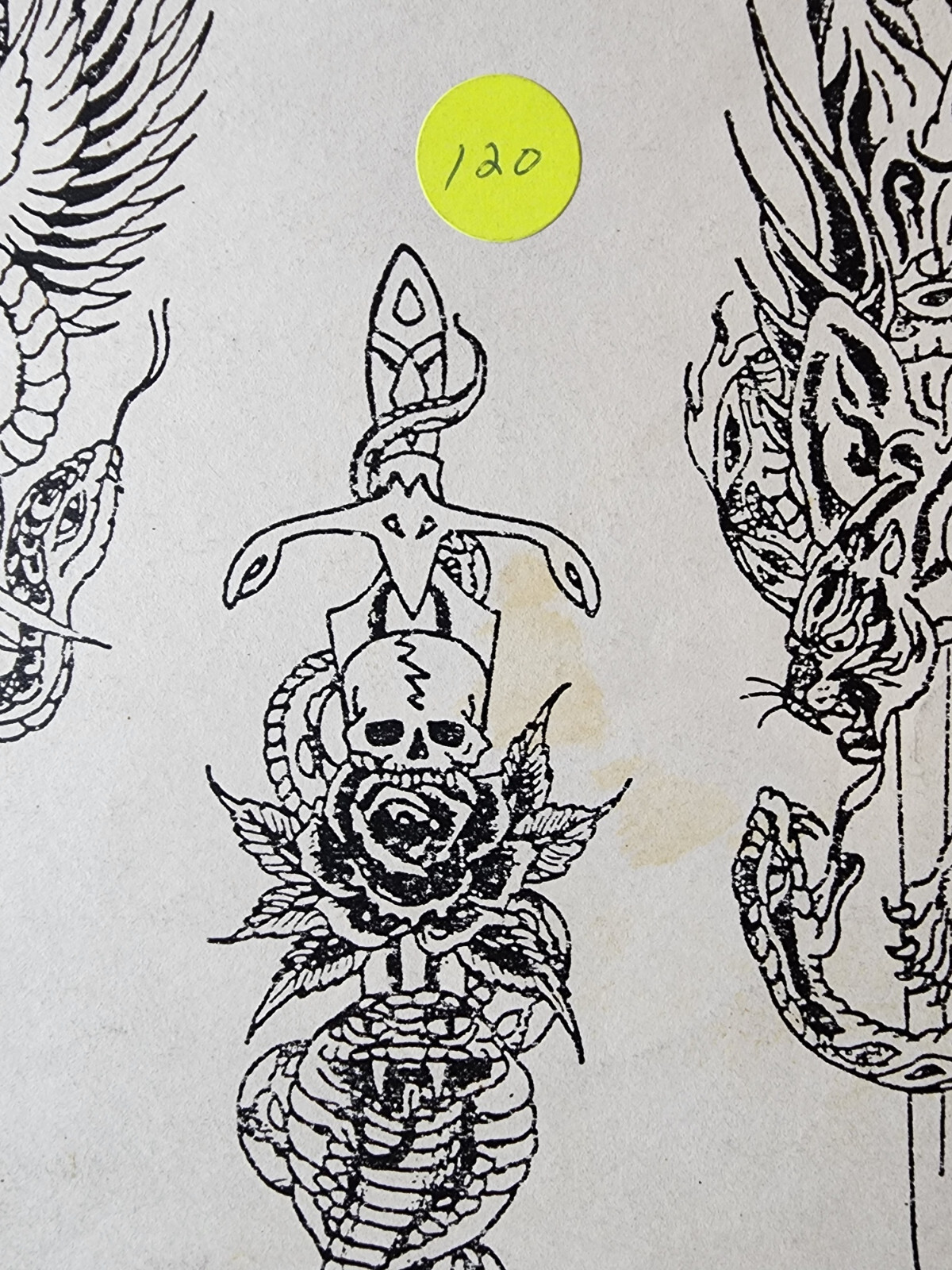 как выглядит 1983 Spaulding Rogers Pinky Yun Traditional Japanese Vintage Tattoo Flash Sheet фото