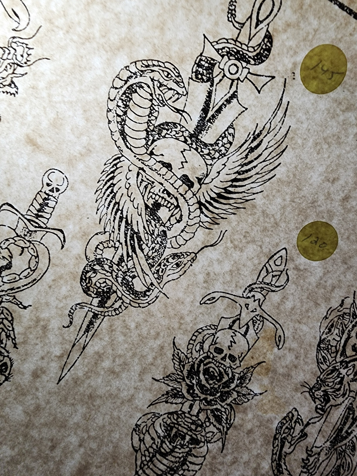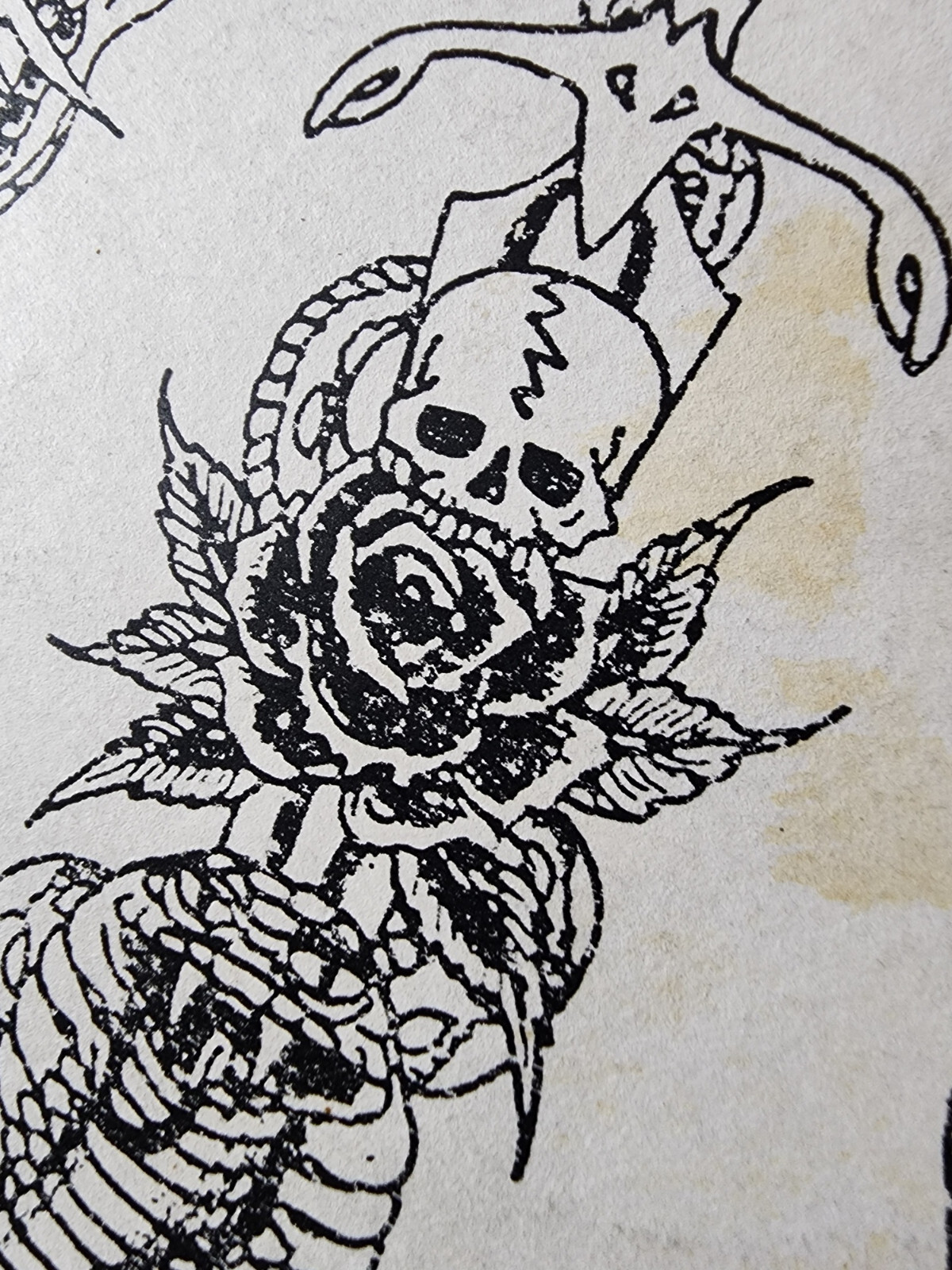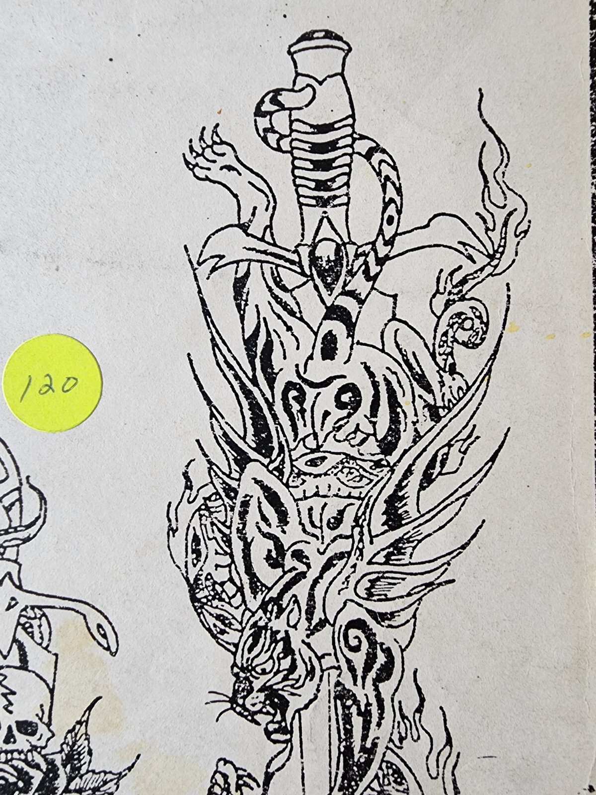 как выглядит 1983 Spaulding Rogers Pinky Yun Traditional Japanese Vintage Tattoo Flash Sheet фото