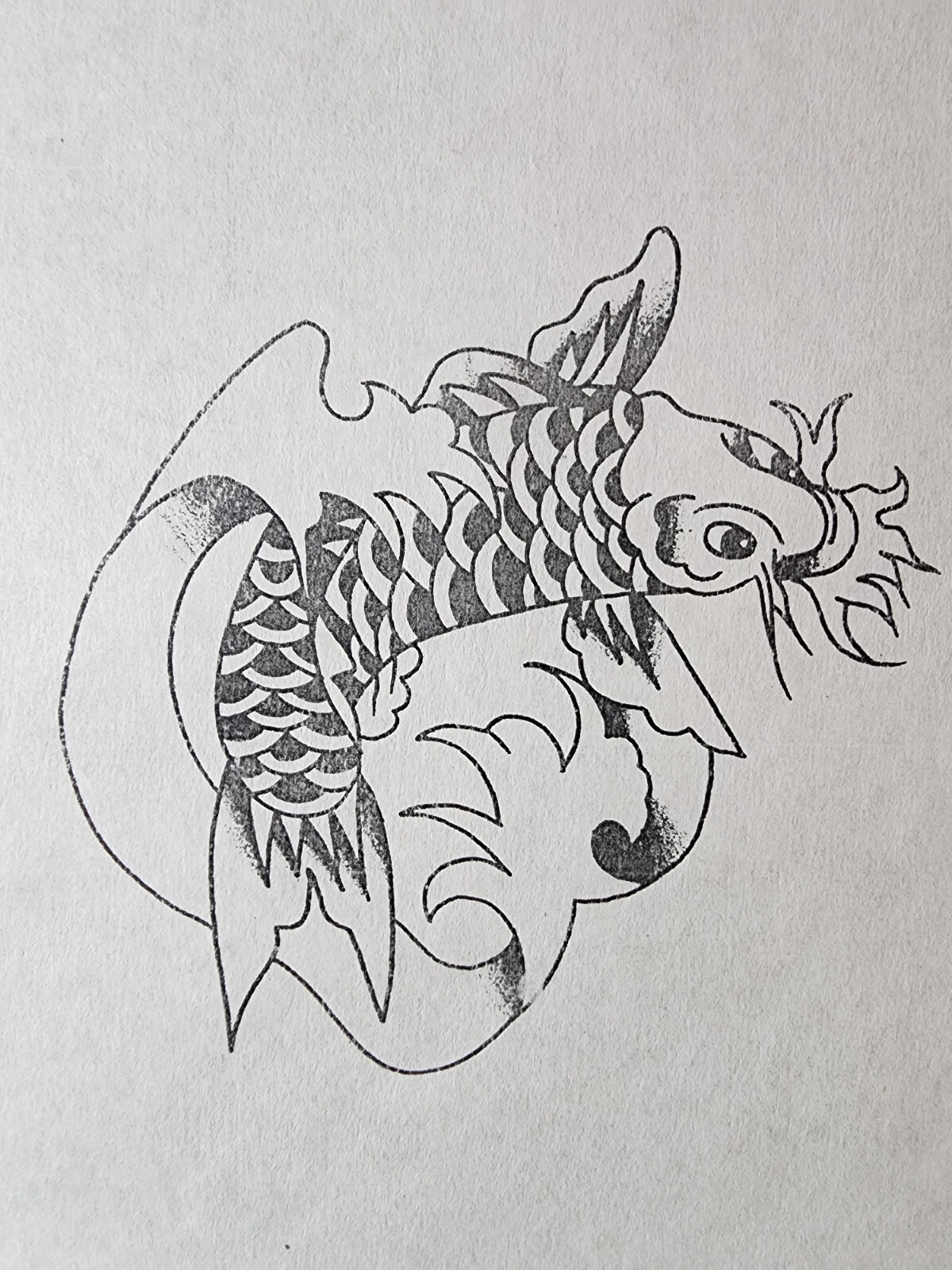 1978 Spaulding Rogers Traditional Vintage Style Tattoo Flash Sheet Koi, Dragon