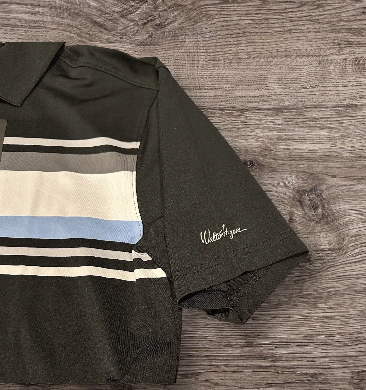как выглядит Walter Hagen P11 Blocked Chest Striped Polo Blocked Striped Black Small NWT New фото