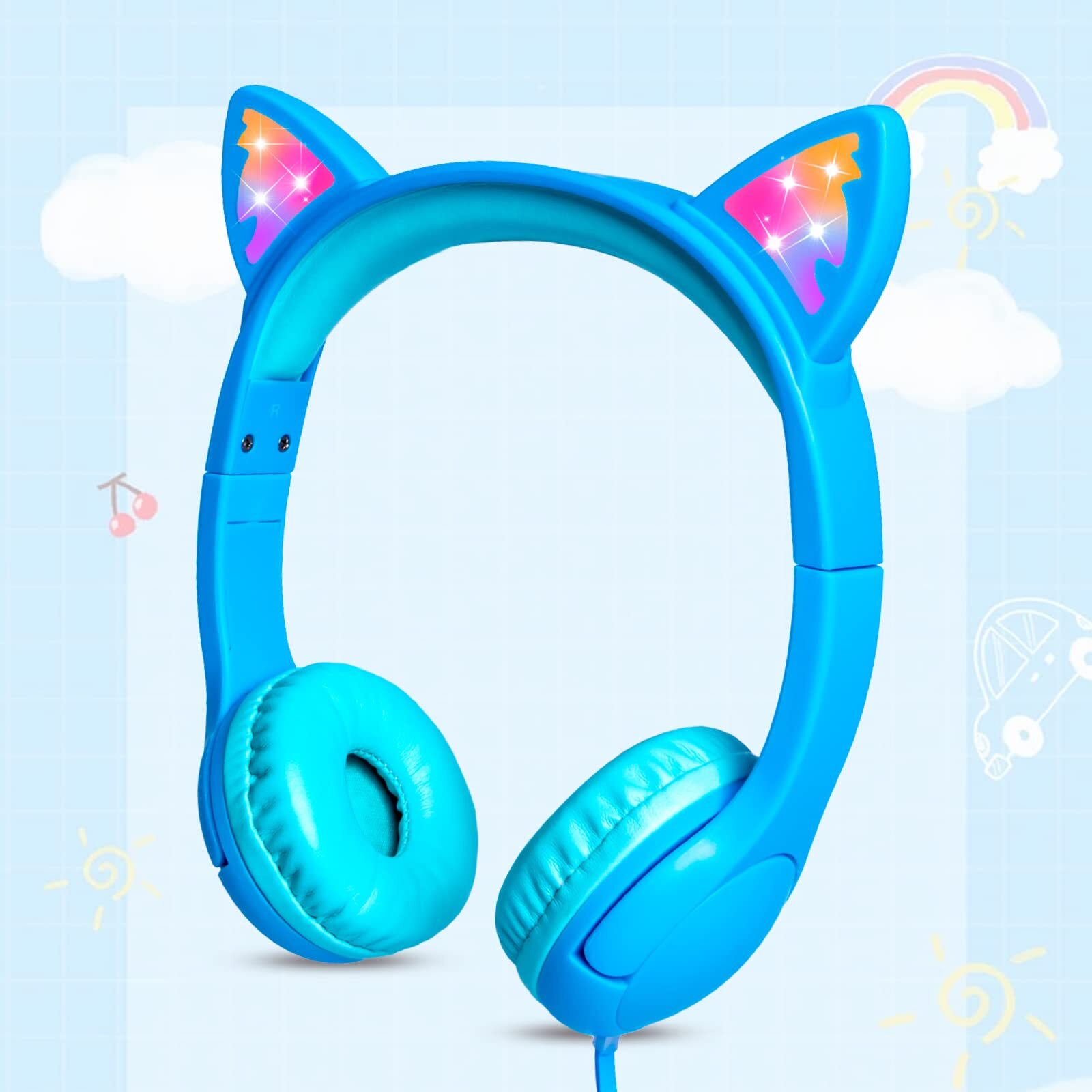 Olyre Kids Headphones with Microphone Girls Headphone Cat Ears LED Light Up S...