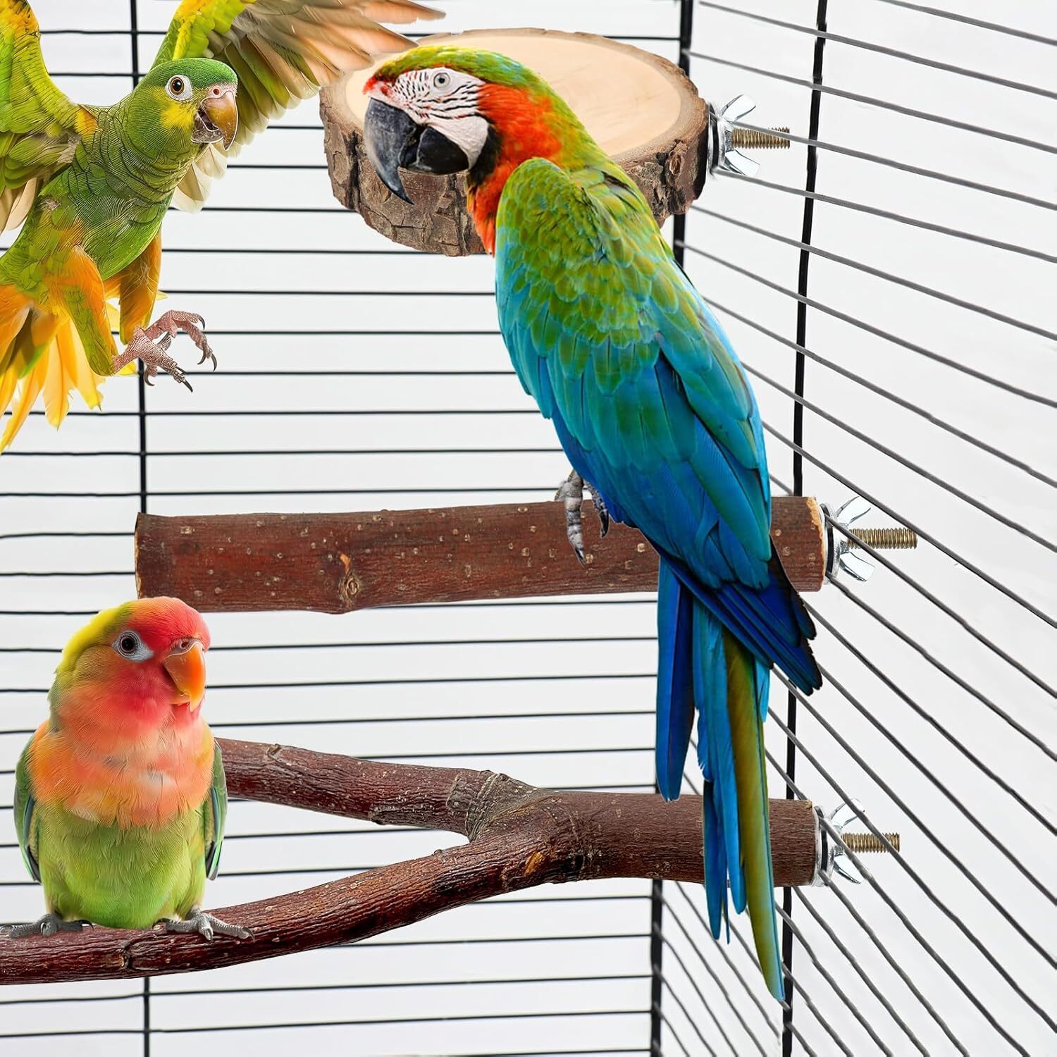 как выглядит 8 Pieces Natural Wood Bird Perch Stand  Multi-Branch Swing Toy for Macaws фото