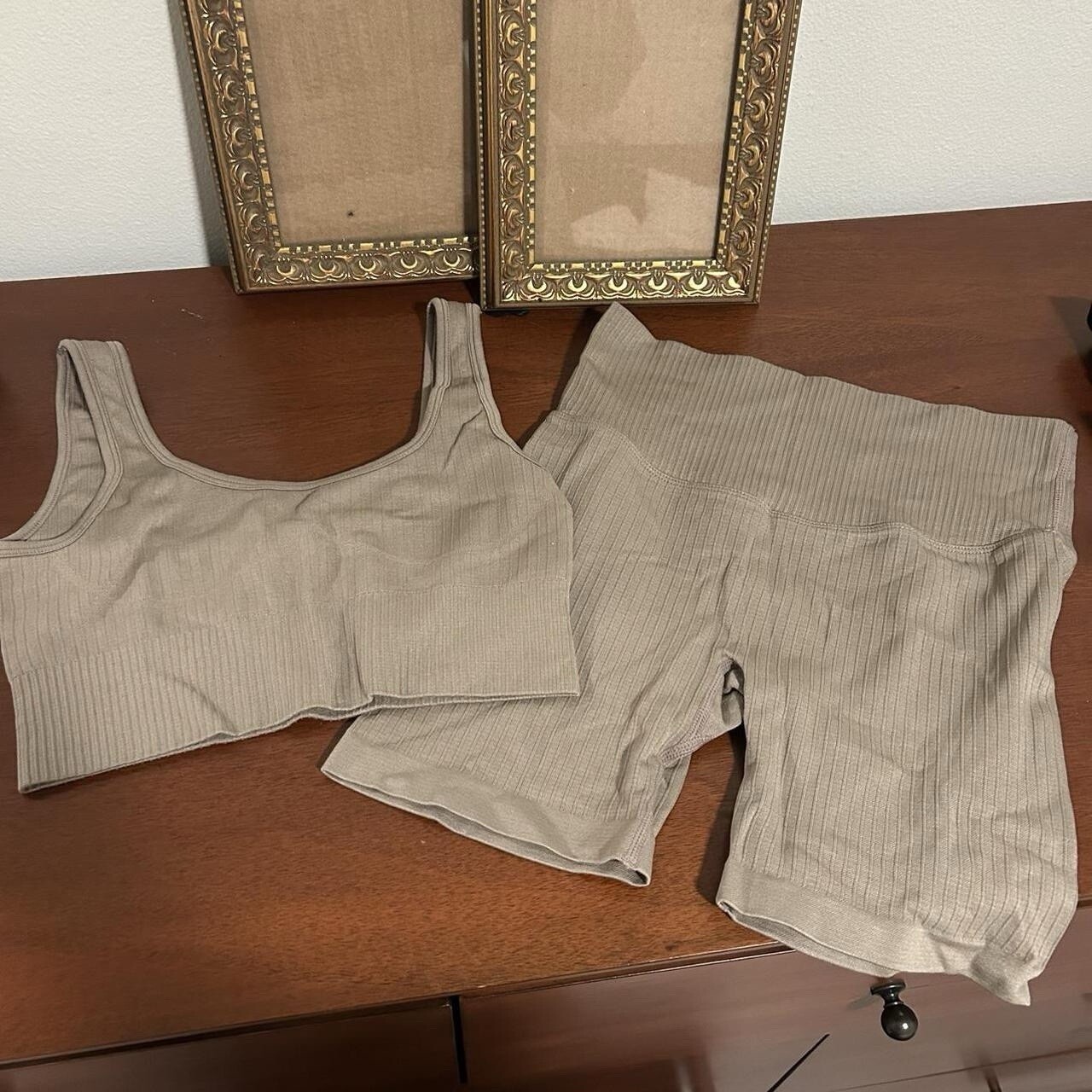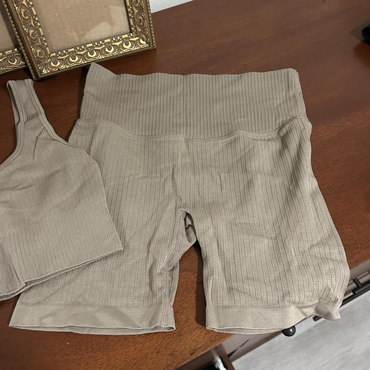 как выглядит Two Piece Lounge Gym Workout Athletic Set Biker Shorts Sports Bra фото