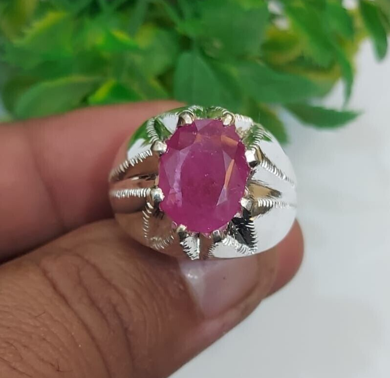 Natural Red Ruby Stone Ring Elegant Design Frame Christmas Ring Silver 925 Ring