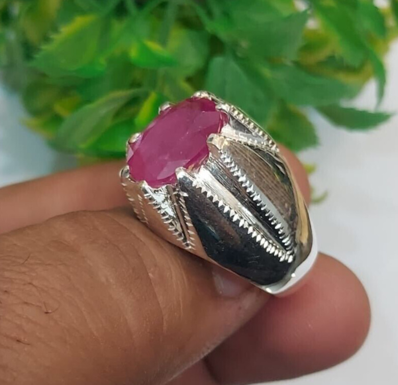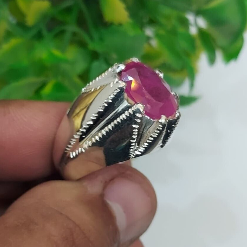 как выглядит Natural Red Ruby Stone Ring Elegant Design Frame Christmas Ring Silver 925 Ring фото