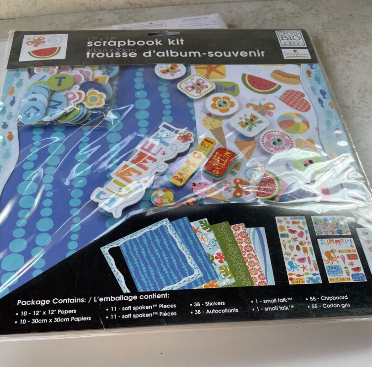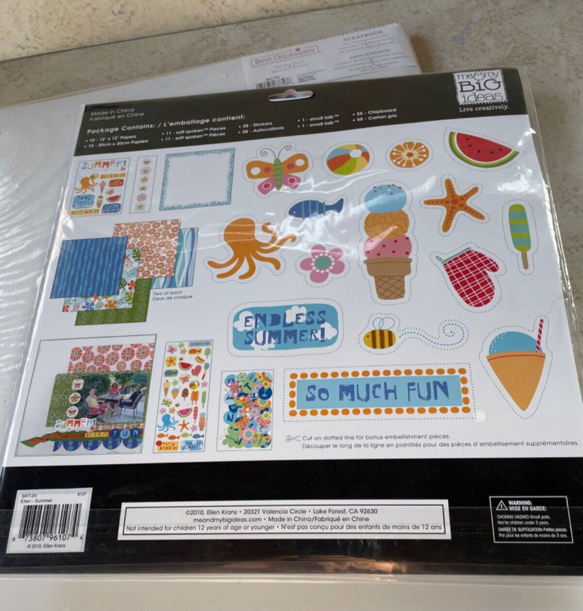 Photograph Scrapbook Album White Design Paper/Sticker Kit 12x12 Summer Theme