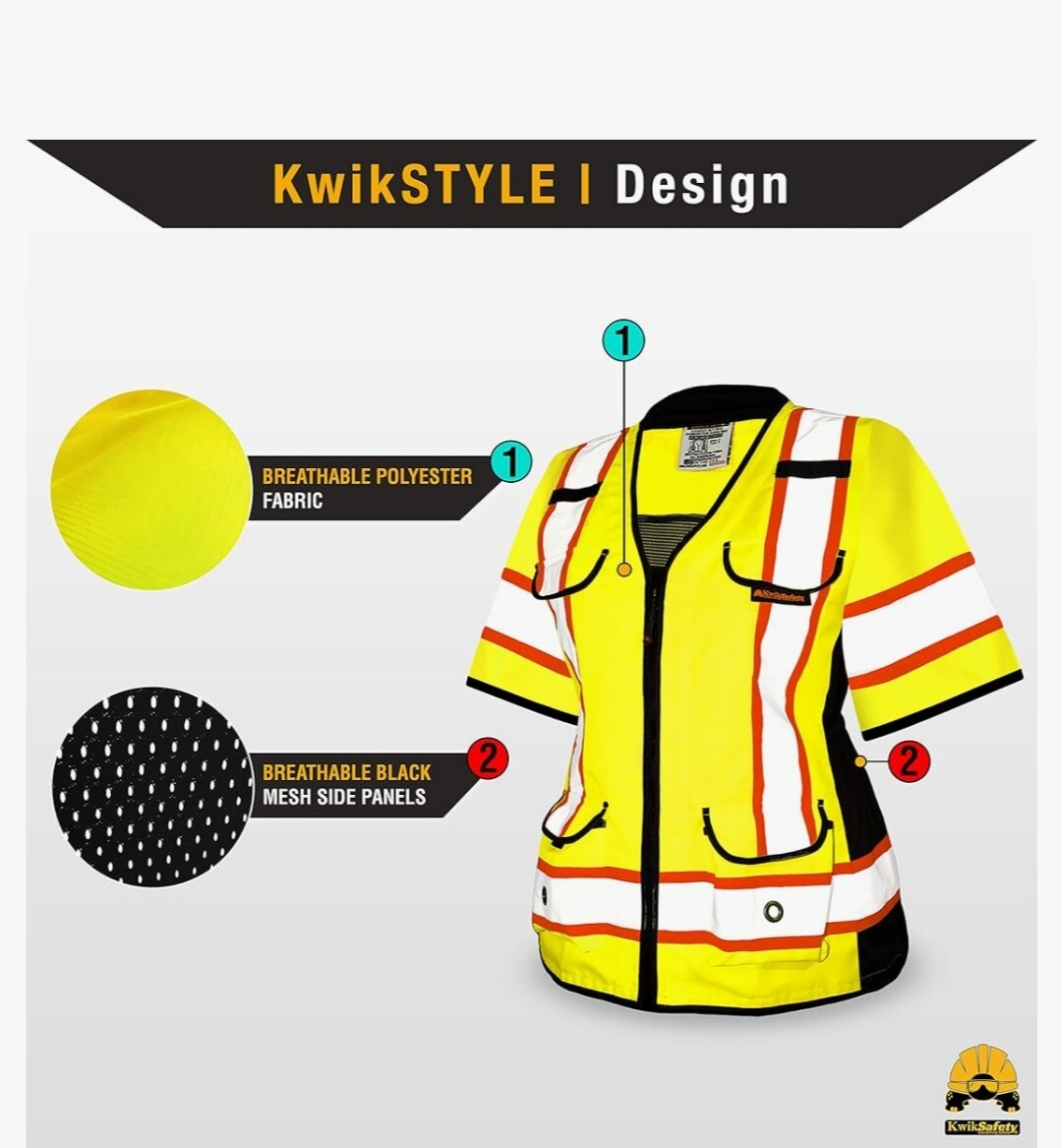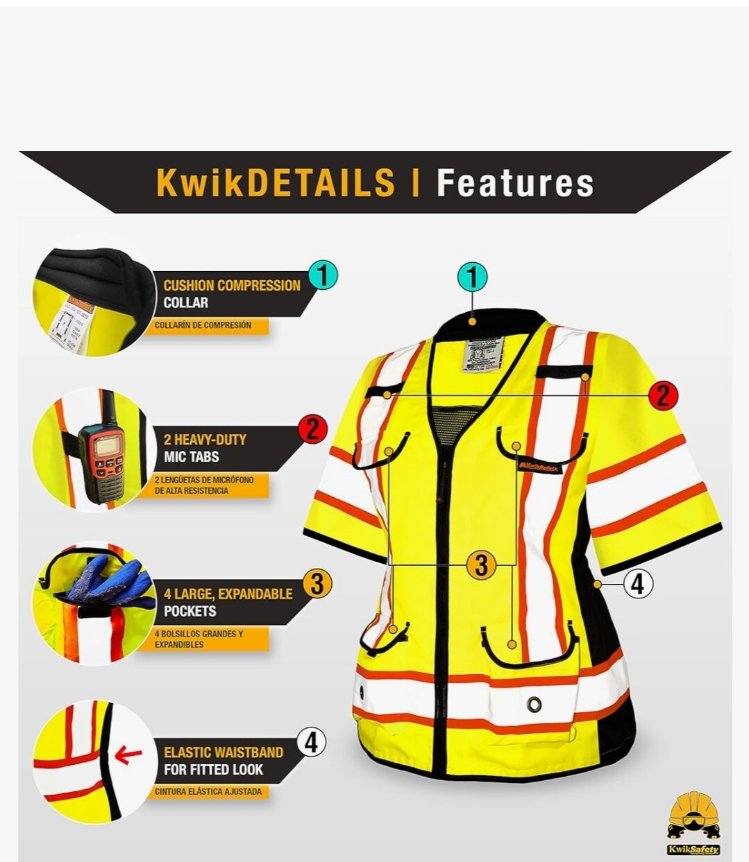 KwikSafety GODMOTHER Class 3 Safety Vest for Women LARGE, ANSI OSHA Hi Vis