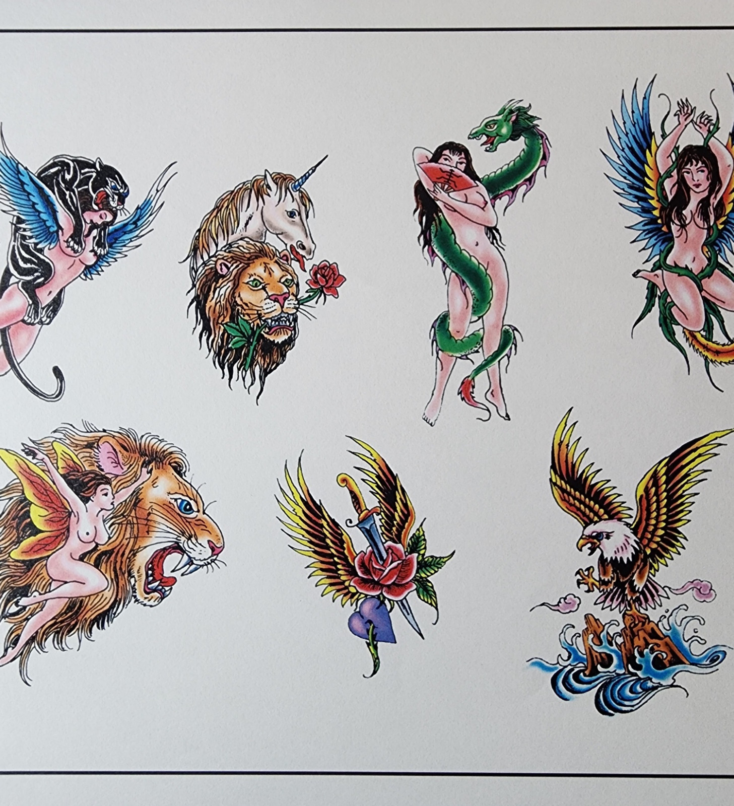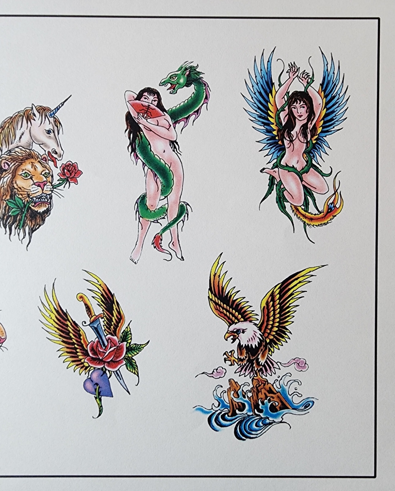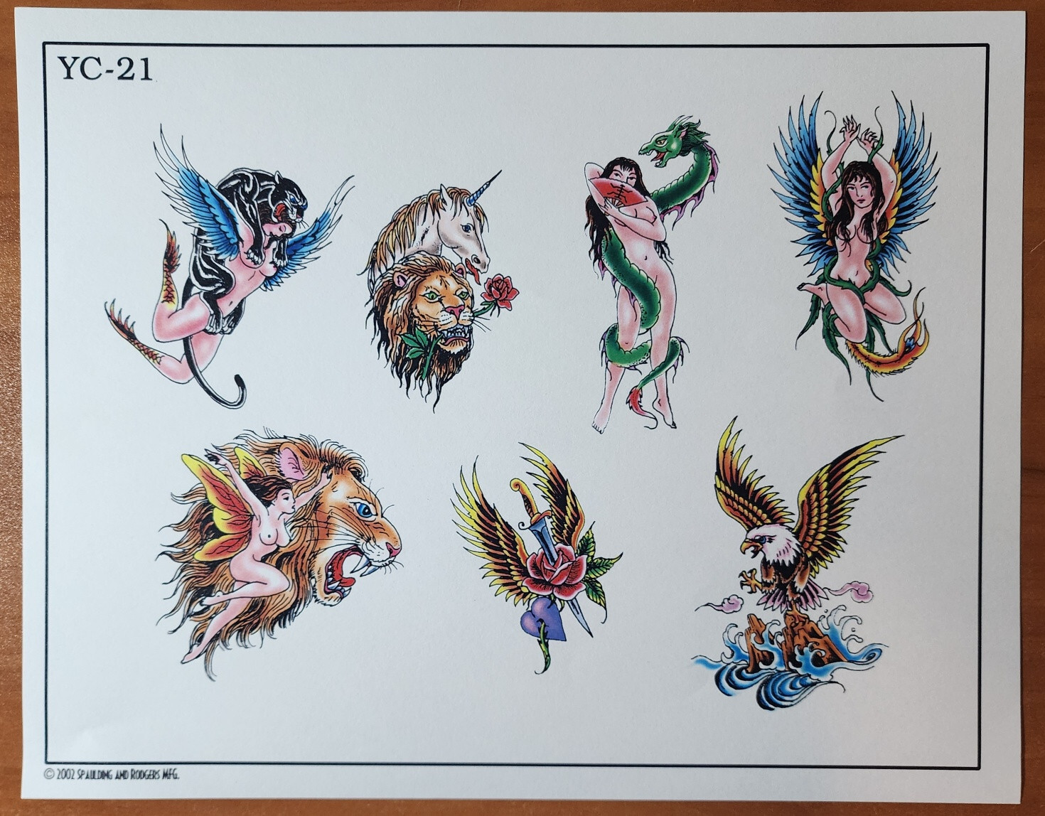 как выглядит Vintage Spaulding Rogers Pinky Yun Traditional Japanese Tattoo Flash Sheet Y21 фото