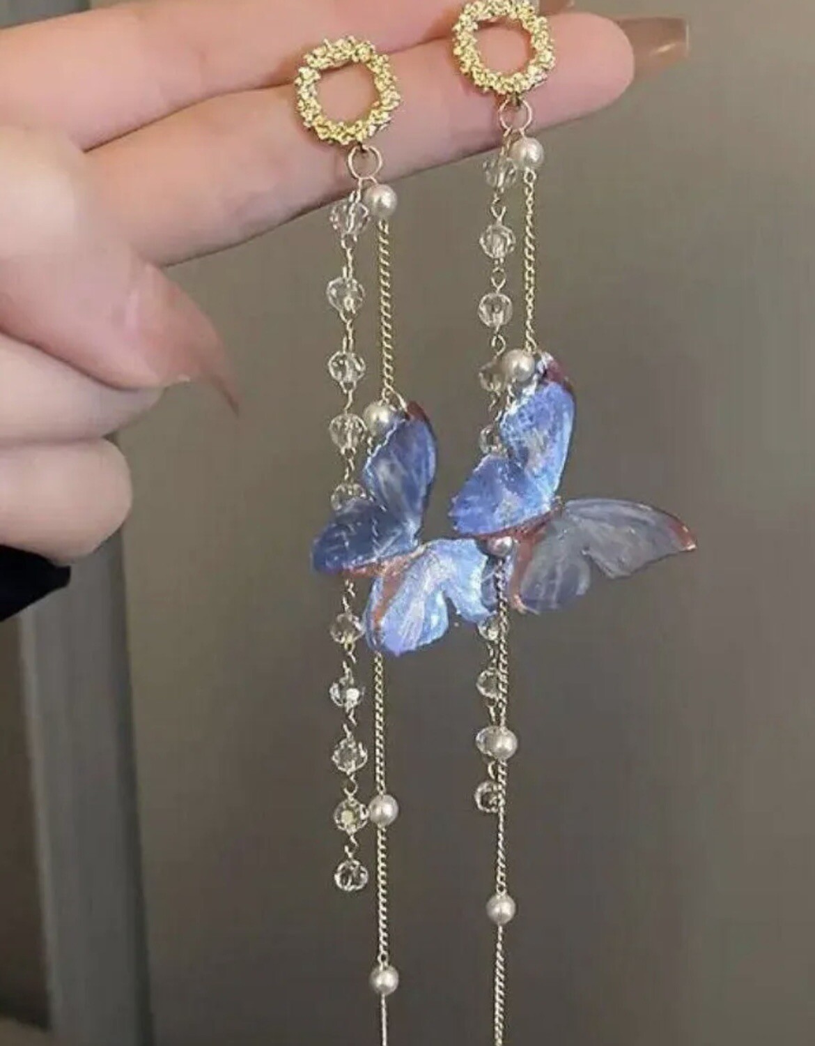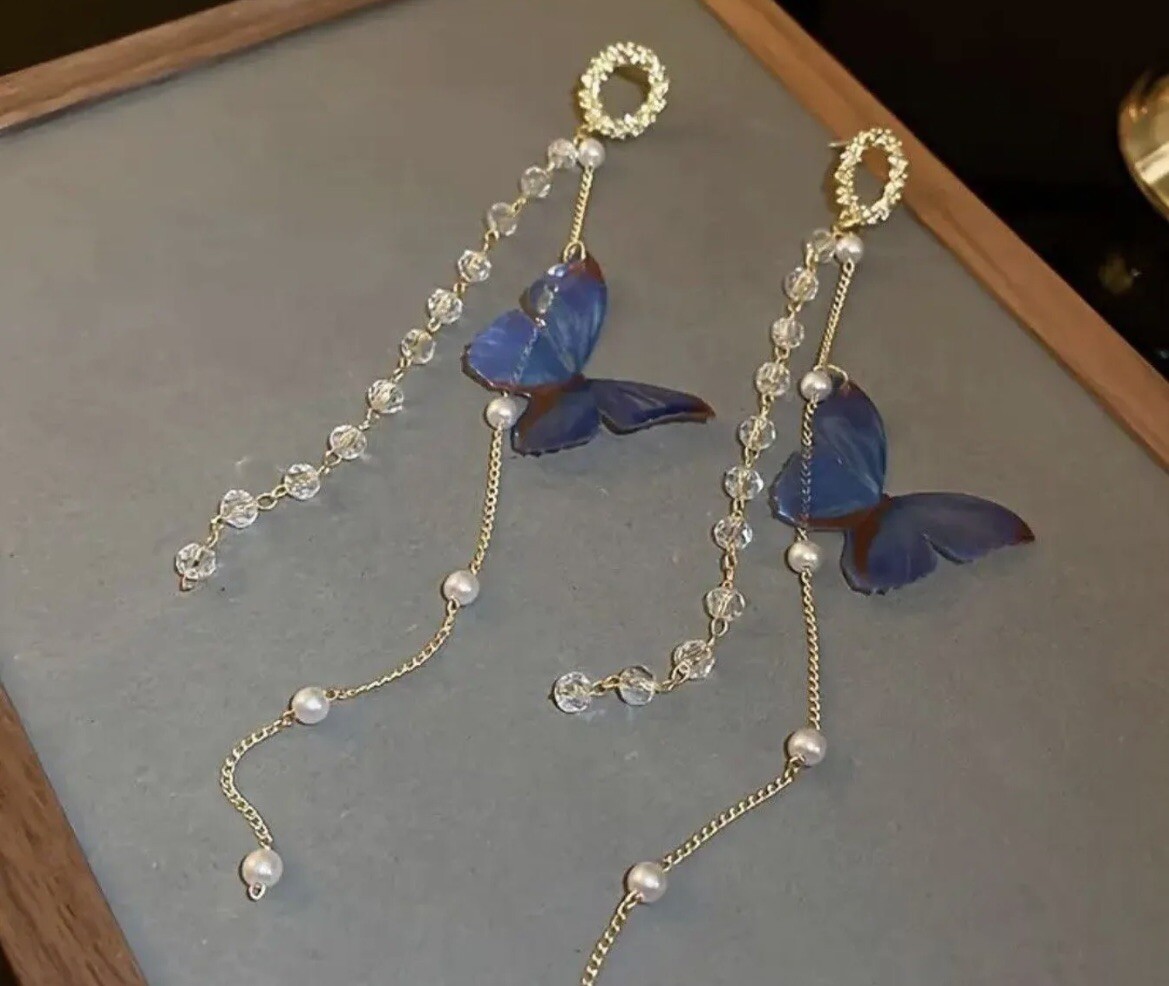 как выглядит Blue Butterfly Long Tassel Earrings фото