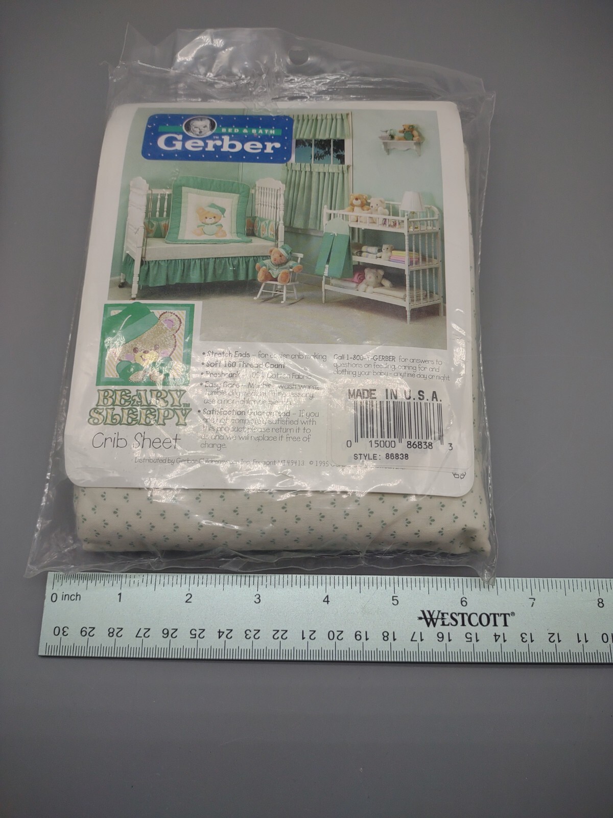 как выглядит Vintage 1995 Gerber Beary Sleepy Fitted Crib Sheet 28x52" New in Package, READ фото