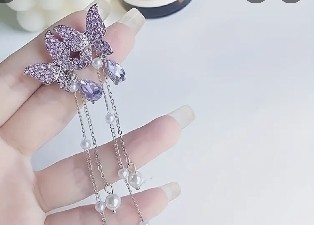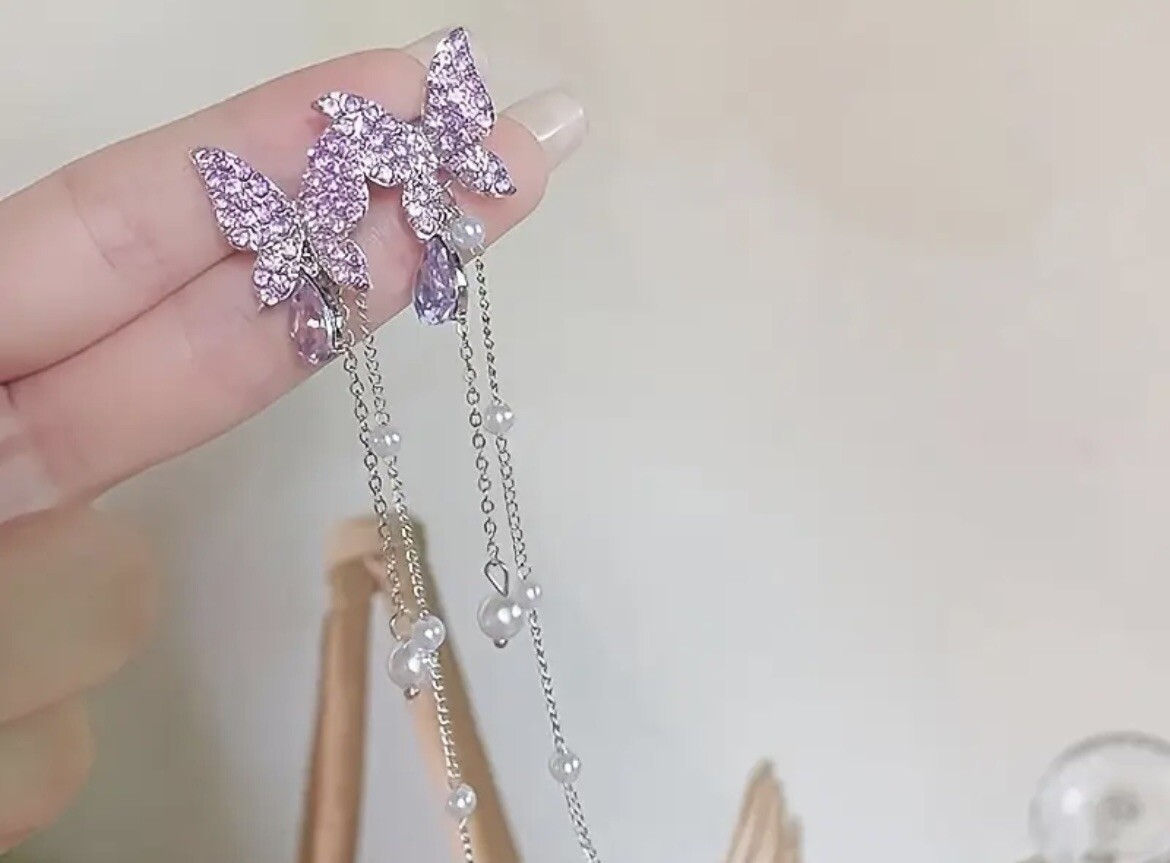 как выглядит Elegant Butterflies Drop Earrings With Rhinestone Tassel фото