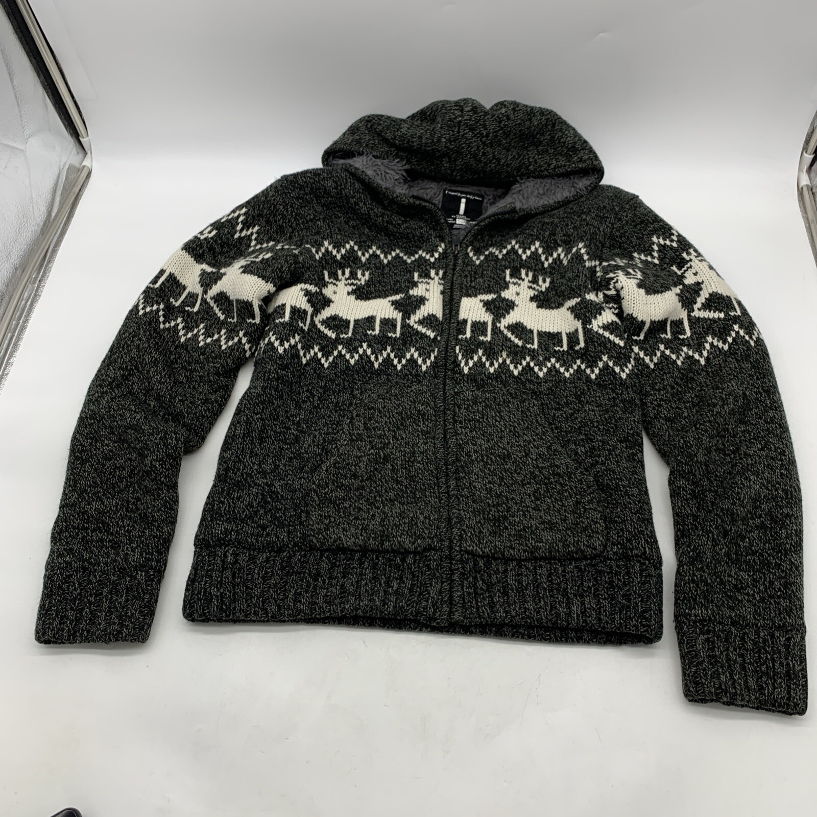 Buffalo Fair Isle Sweater Jacket Mens S Full Zip Gray Ragg Reindeer Faux Fur
