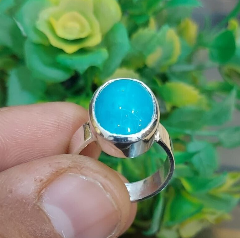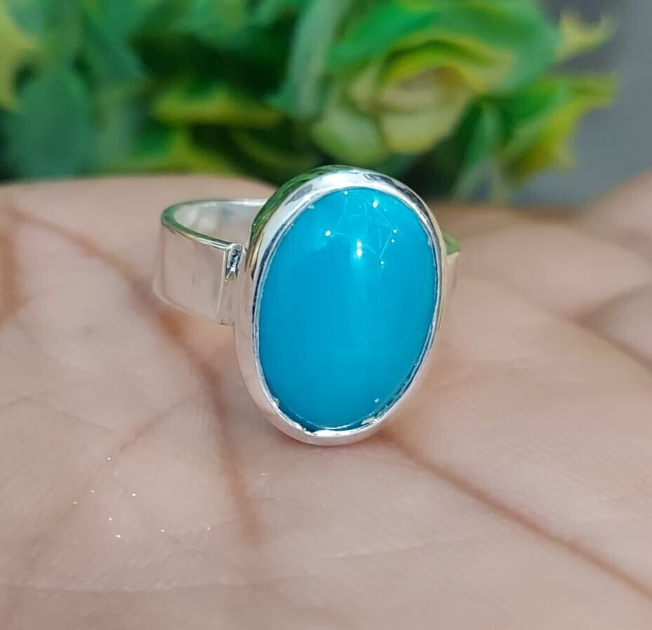 Natural Turquoise Stone Sky Blue Color Feroza Ring Decent Frame Silver 925 Ring