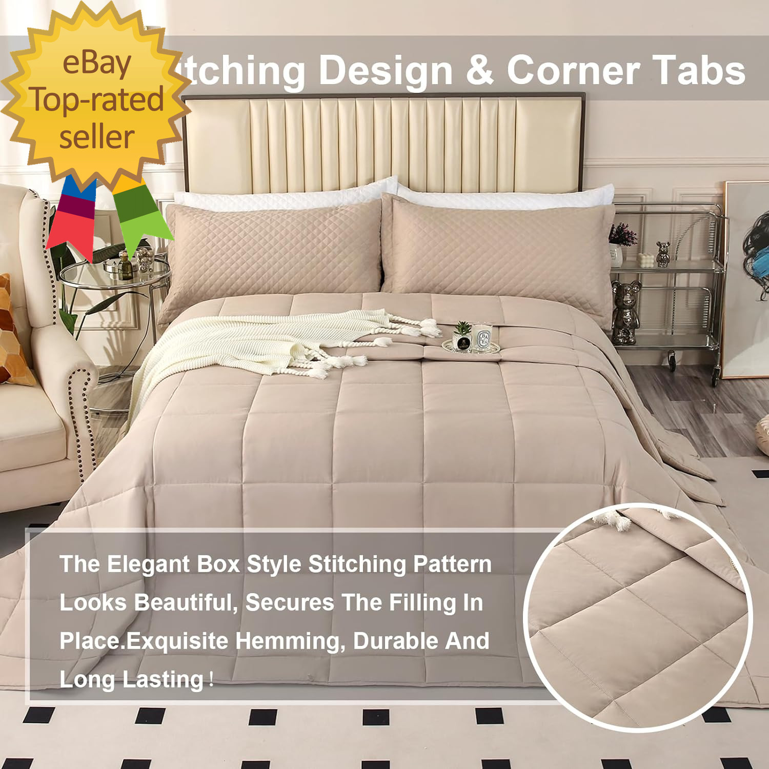 как выглядит Oversized California King Comforter Set 120X120, Extra Large King Size Quilts 3 фото