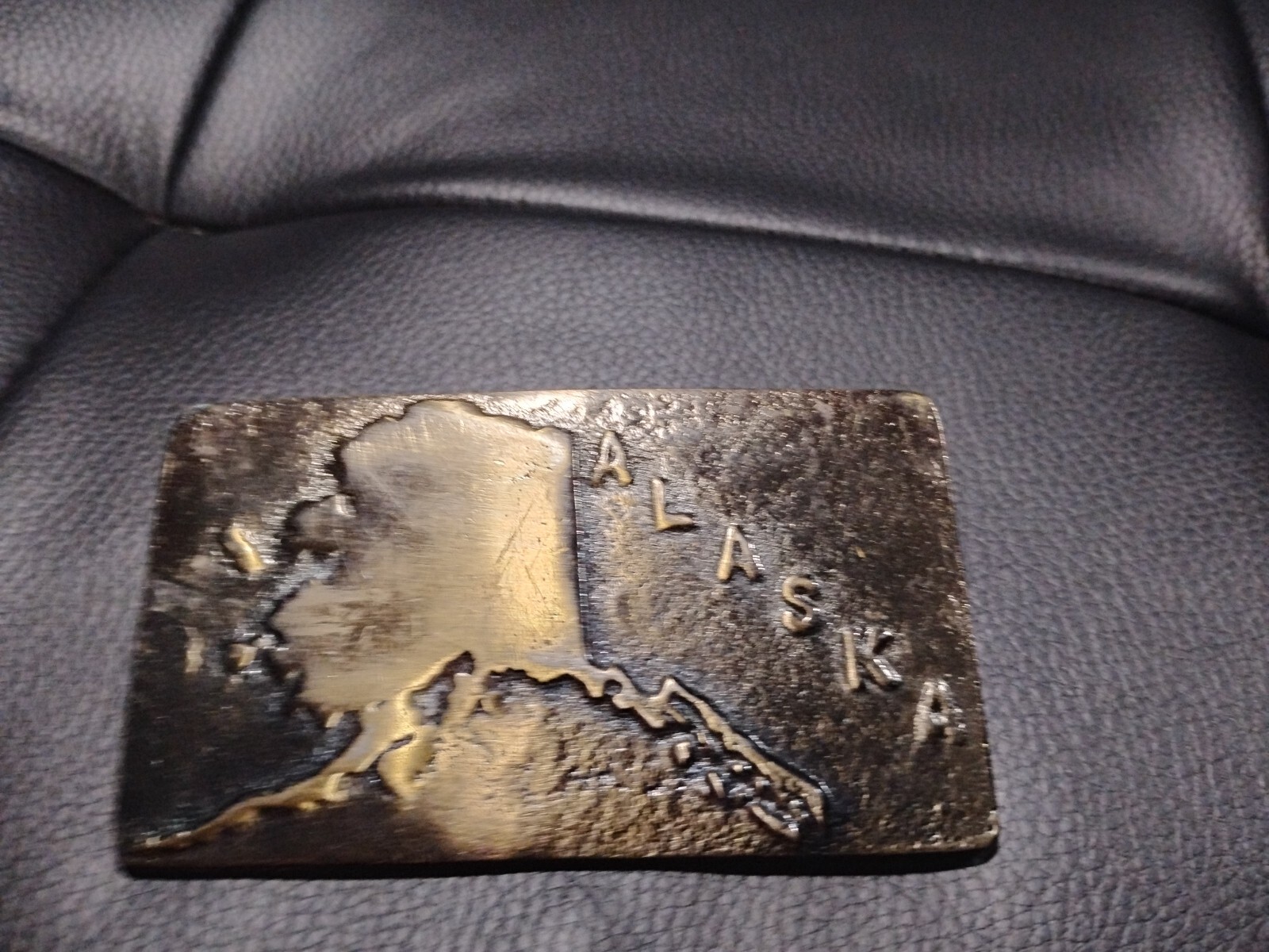 как выглядит Vintage Handcrafted Alaska State Belt Buckle, Heavy Silver Tone Metal фото