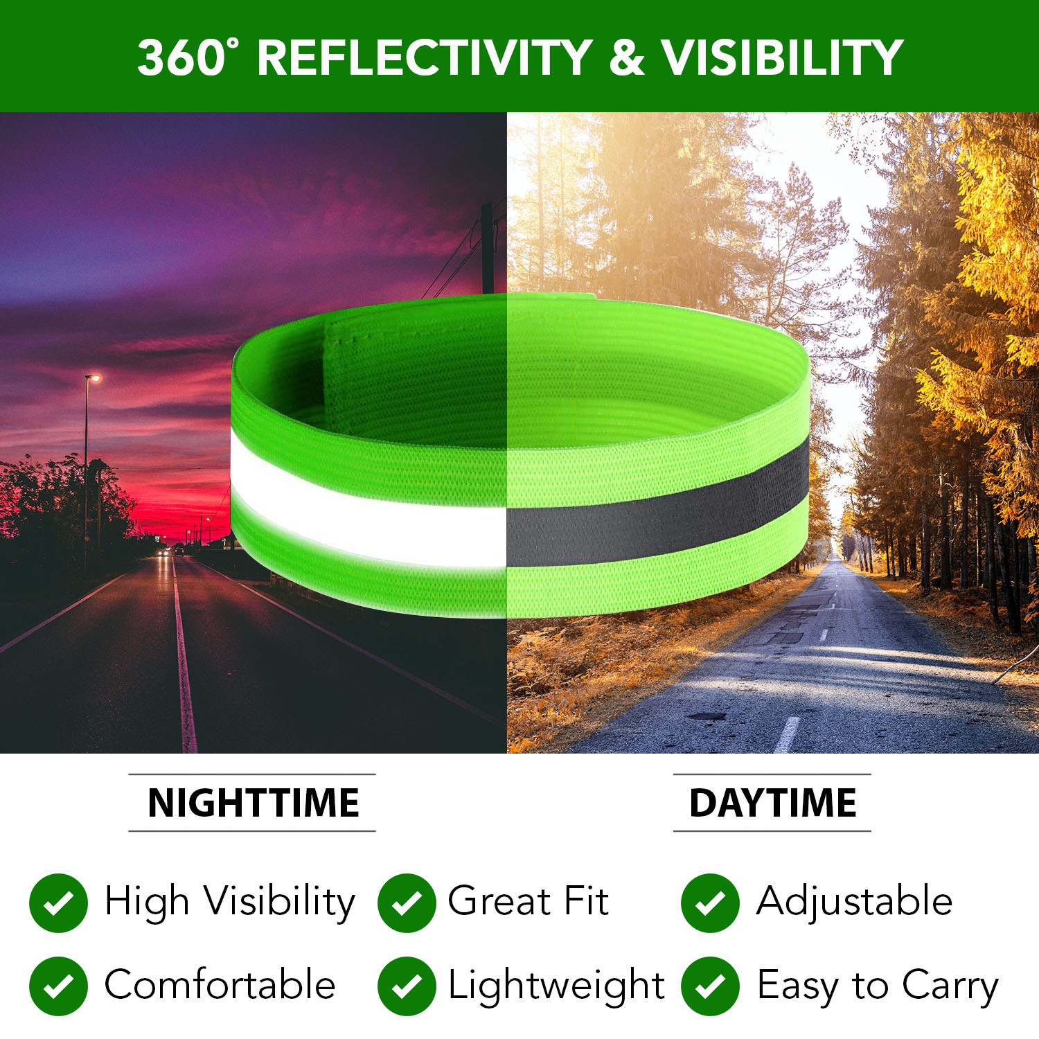 MaximalPower Reflective Band Reflector Band for Wrist Arm Ankle High Visibility